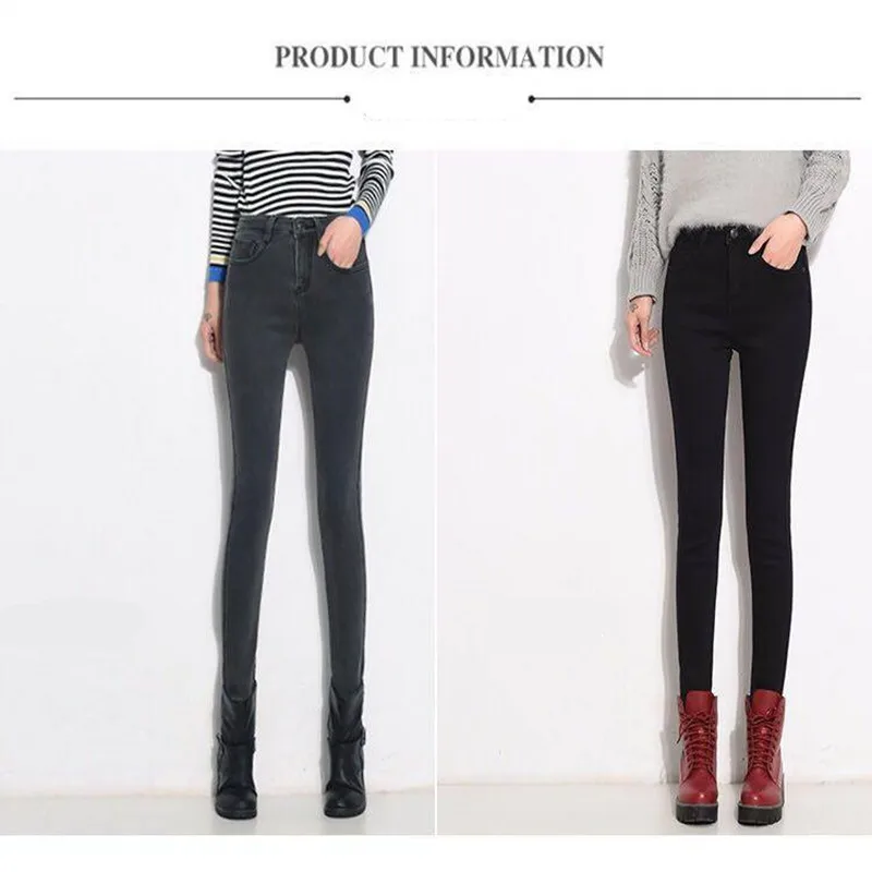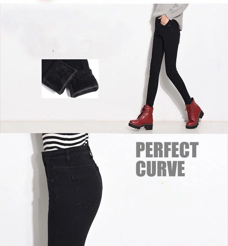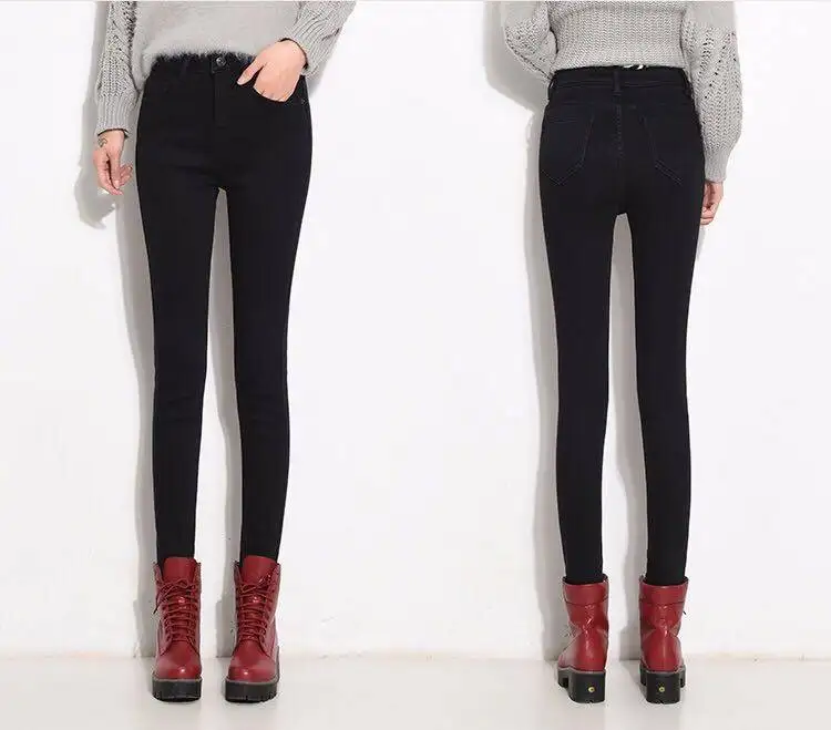 Женские джинсы на флисе, обтягивающие, зимние, 2020