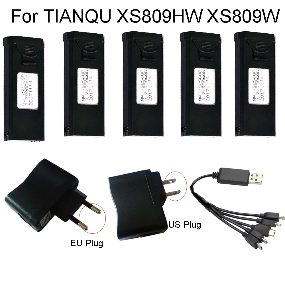 Оригинальный литий-ионный аккумулятор 3,7 В 900 мАч с зарядным устройством, кабель 5 в 1 для VISUO XS809HW XS809Wxs809 RC Quadcopter, запасные части, аккумулятор 3,7 В