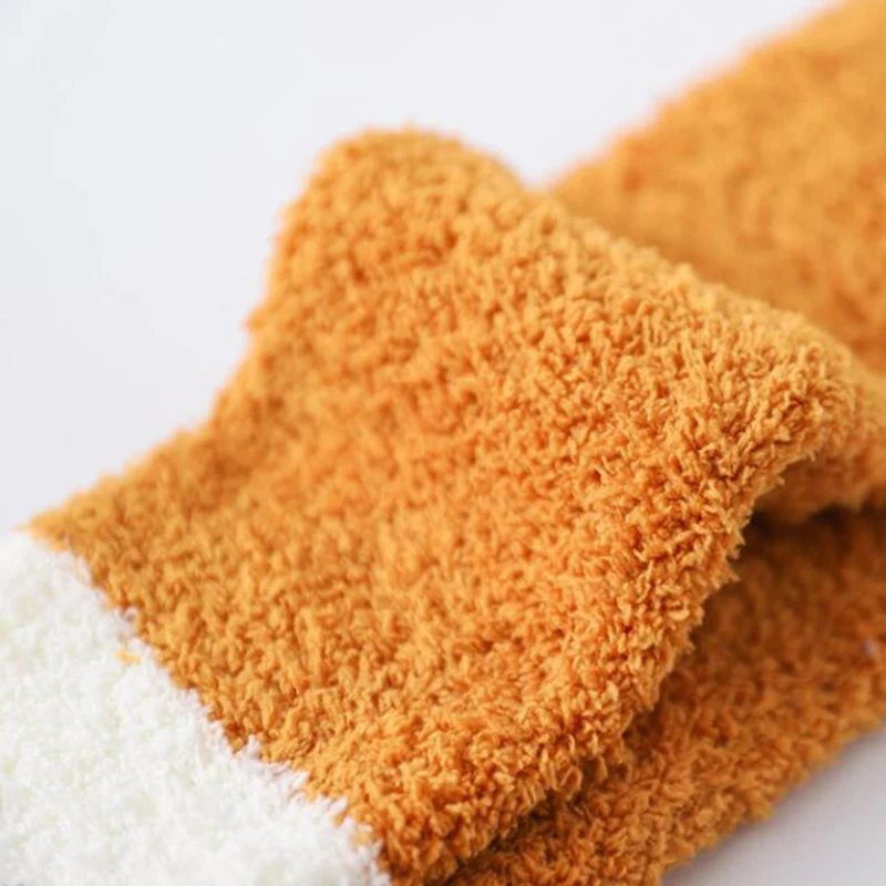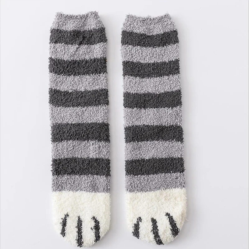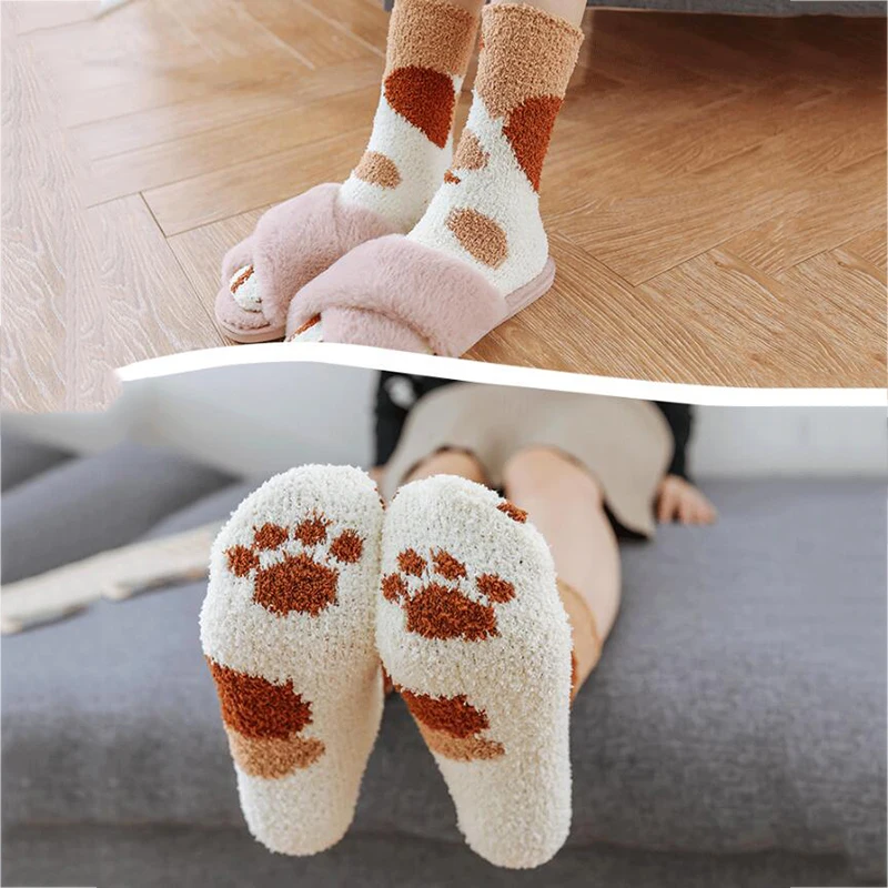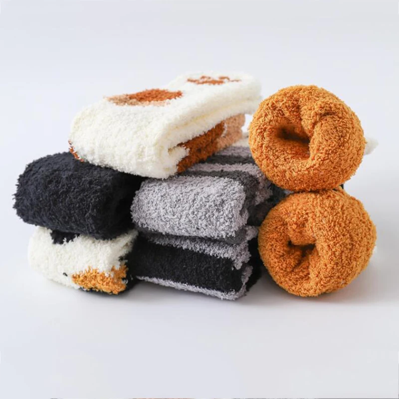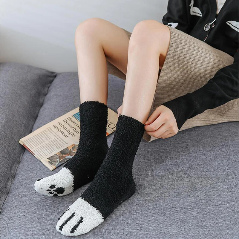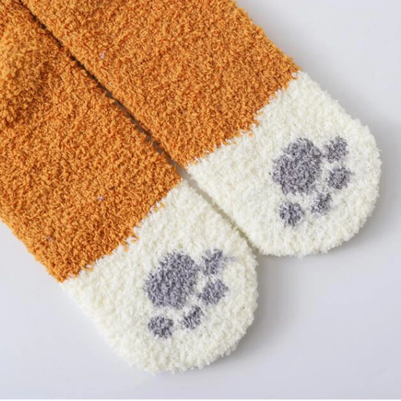 Носки с кошачьими крапанами 1 пара, теплые носки на осень и зиму, толстые флисовые бархатные носки для сна с милым шлангом