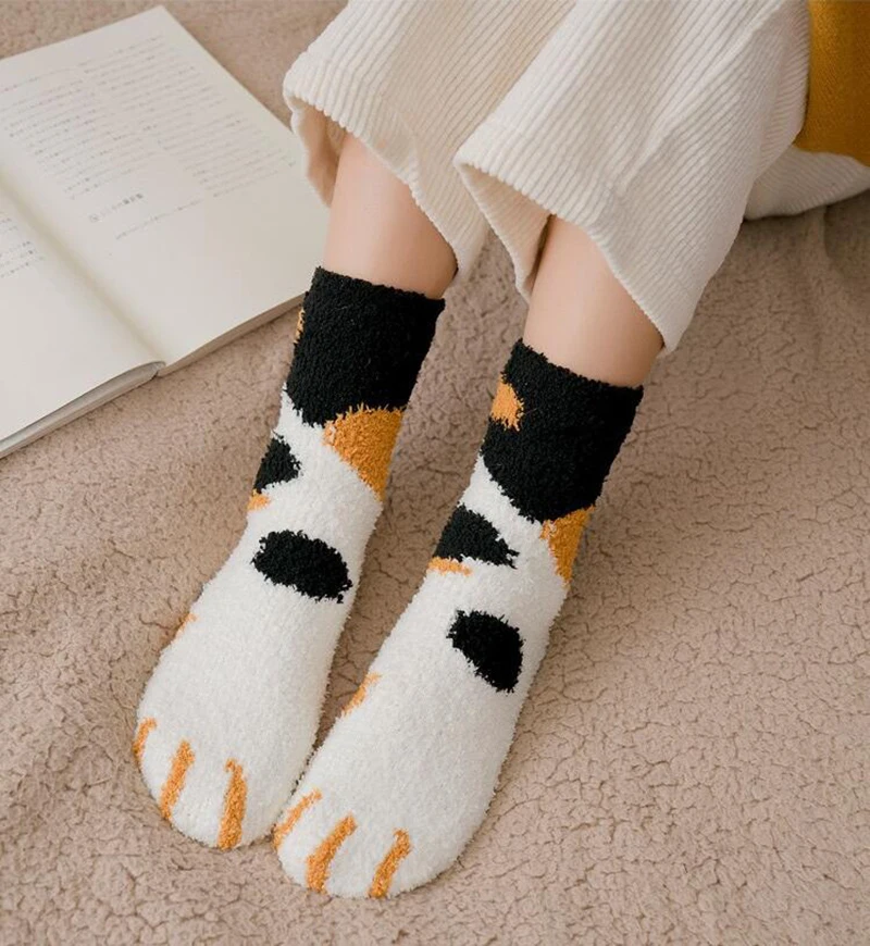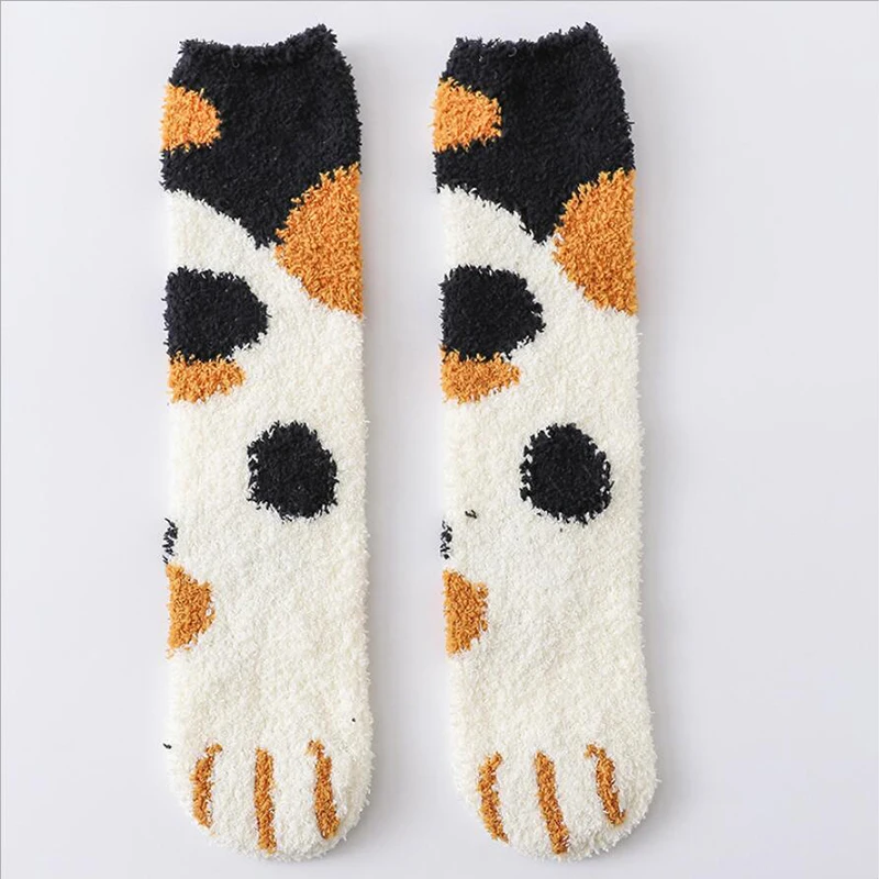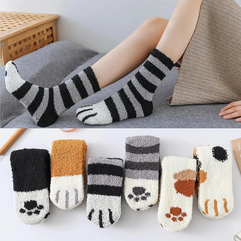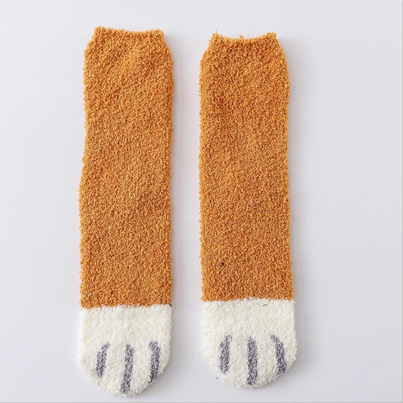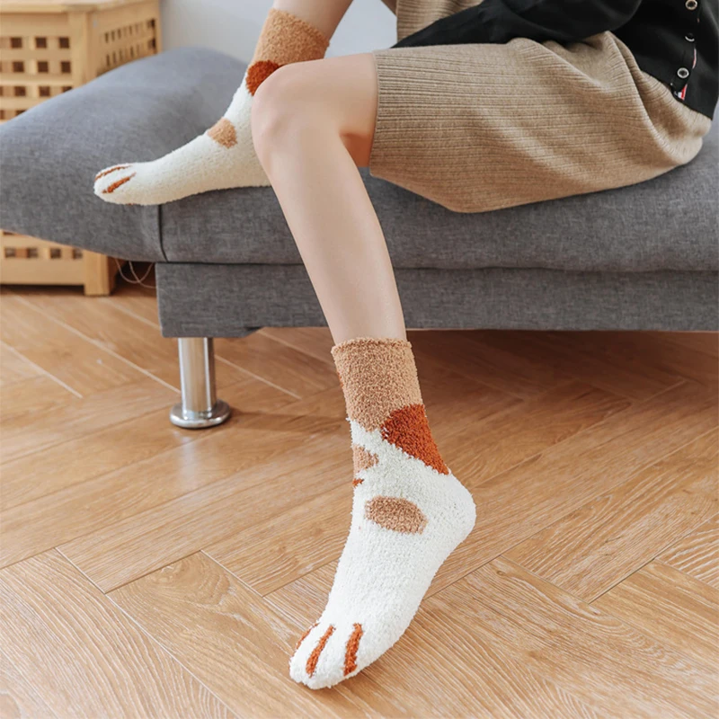 Носки с кошачьими крапанами 1 пара, теплые носки на осень и зиму, толстые флисовые бархатные носки для сна с милым шлангом