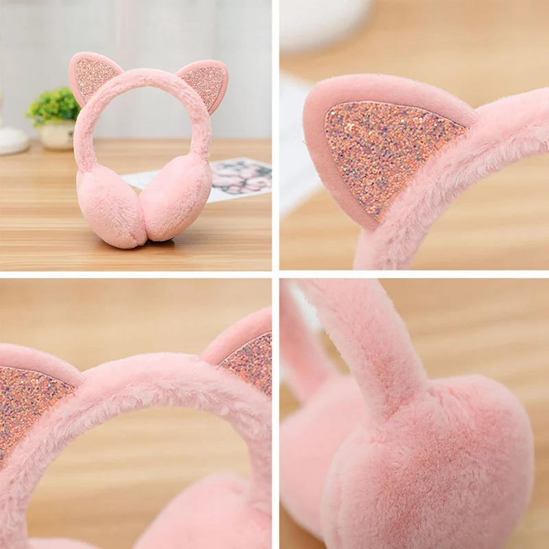 Меховые теплые наушники для женщин и девочек, мягкие пушистые наушники, блестящие наушники, 6 цветов, Прямая поставка, теплые наушники кошка