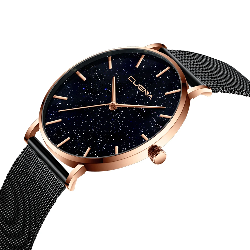 Женские кварцевые часы CUENA, часы из нержавеющей стали с сеткой, 2019