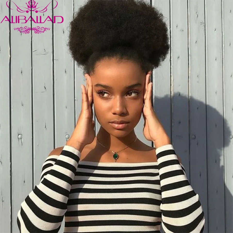 Афро кудрявые конский хвост бразильские Омбре Remy волосы шнурки афро слоеные конский хвост клип в наращивание волос 1B30