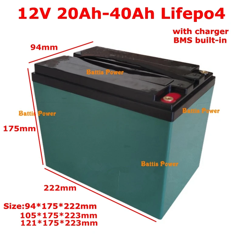 12 В20Ah/25Ah/30Ah/40AhLiFepo 4 батарейный блок со встроенным BMS