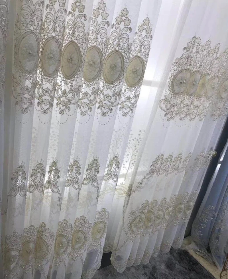 Тюлевая занавеска из тюля, с жемчужной вышивкой, для гостиной, на заказ, X-ZH033 #40