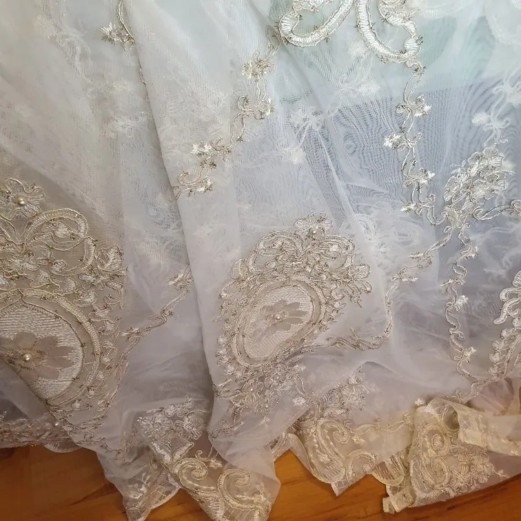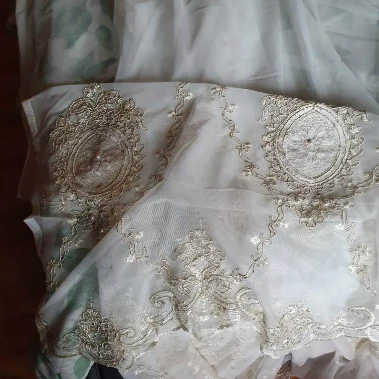 Шикарный тюль, выглядит в жизни гораздо интереснее, чем на фото, вышивка очень красивая, пока не могу повесить, поскольку у нас идёт ремонт, брала 8 метров, но высоту нужно было подогнать под мои параметры, продавец сделал всё, как просила, доставка быстрая, покупкой осталась довольна.