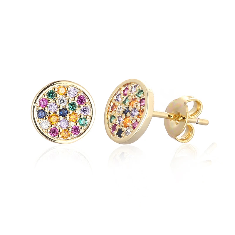 Женские серьги-гвоздики с круглым сердечком, из меди и фианита