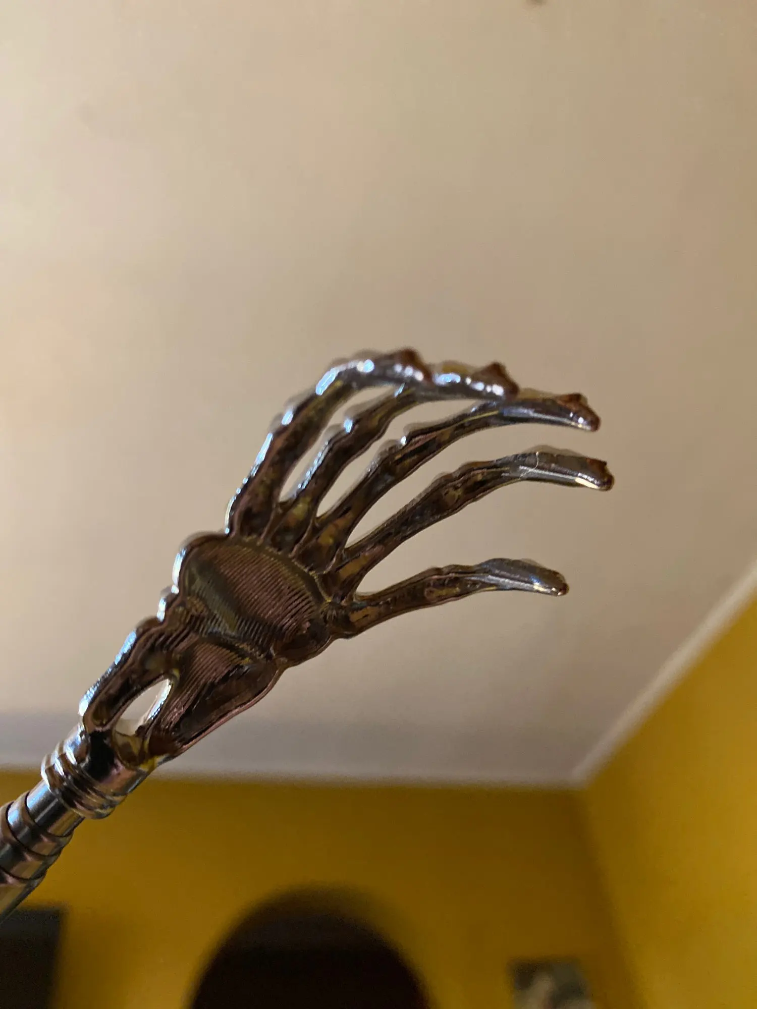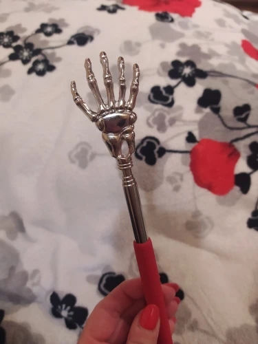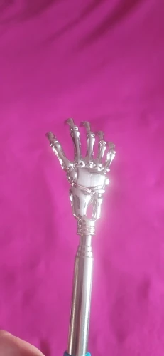 Мне нравится эта вещь! Это намного более полезно, чем я могу это сделать! Очень прочный! Ручка из приятной липкой резины. Растяжимая деталь такая же, как антенна на старом радиоприемнике boombox и она легко растягивается, но остается на желаемой длине без проскальзывания и не сгибается и не кажется, что она сломается. Рука скелета милая и надежно закреплена. Я настоятельно рекомендую этот продукт как истеричный, так и полезный!