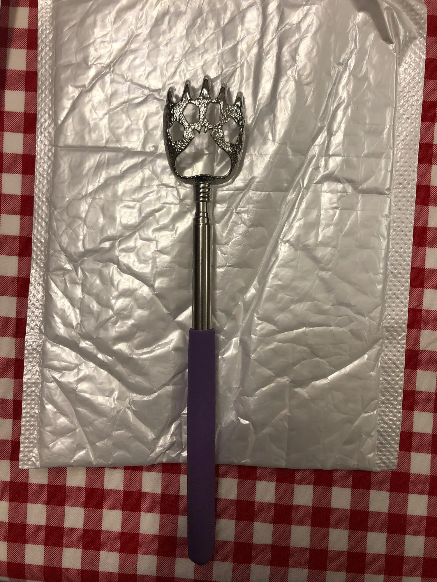 прикольная чесалка, только маловата. хотя ручка хорошо выдвигается. саму лапу бы пошире
