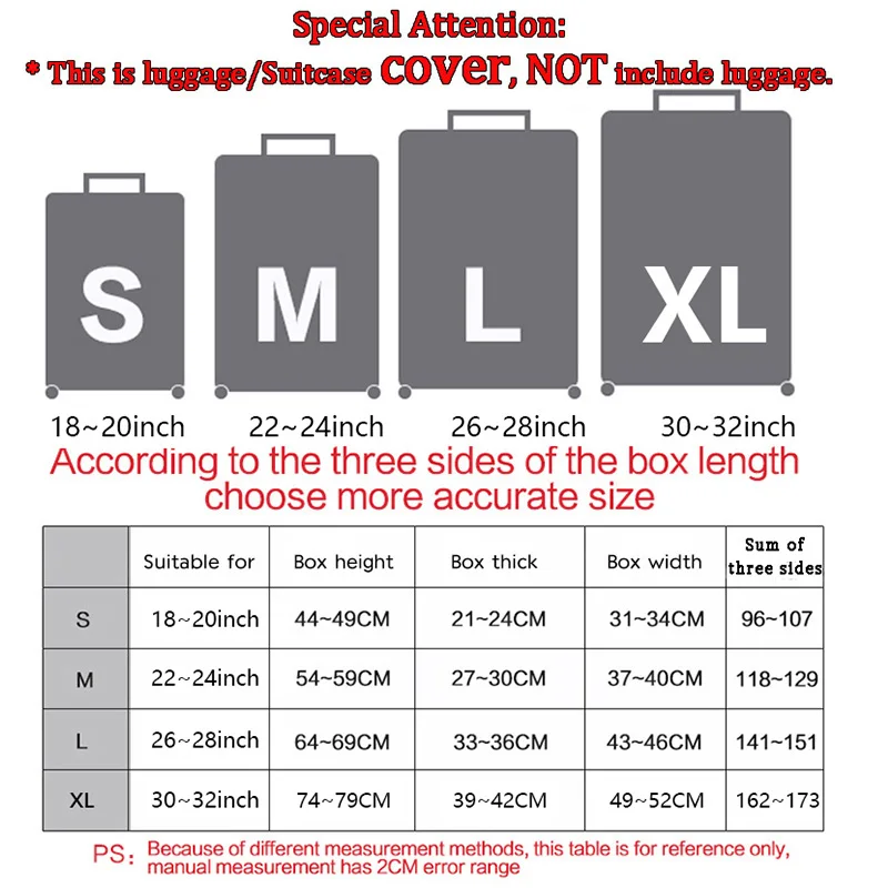 Защитный чехол для багажа предлагает простой и экономичный способ защитить ваш багаж от обычного износа, который происходит в любое время, когда ваш багаж находится вне ваших рук; Во время путешествий, круизов, И поездки на такси. Жирные пятна, царапины, потертости, разливы: Защитный чехол для багажа защищает эти некрасивые шрамы от ткани Вашего багажа, сохраняя красоту даже при постоянных поездках. Защитный чехол для багажа не является краткосрочной фиксацией. Это долгосрочное решение. Идеально подходит для большинства брендовых чемоданов Примечание: Только Чехол, чемодан в комплект не входит. Чемоданы других брендов могут иметь немного другой дизайн, мы не можем обещать все чемоданы, поэтому, если у вас есть какие-либо вопросы, пожалуйста, свяжитесь с нами Комплектация: только чехол для чемодана-1 шт. Он определенно отлично справится, чтобы защитить наш чемодан от царапин при грубой транспортировке в аэропорту. Товар имеет очень яркие цвета, что позволяет легко заметить его на багажном ремне в аэропорту. Материал: эластичная ткань Размер: S для чемодана 18-20 дюймов M для чемодана 22-24 дюйма L для чемодана 26-30 дюймов