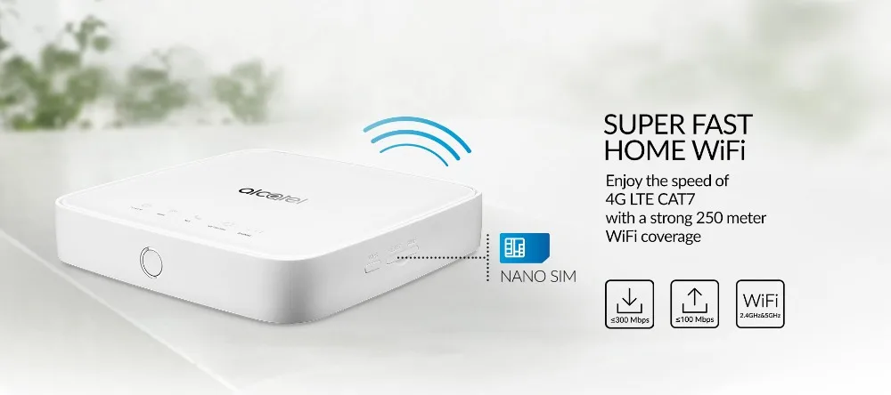 Alcatel Linkhub hh70это Новая Домашняя станция LTE Cat7, которая имеет два порта Ethernet (один для LAN и другой для LAN/WAN), один порт USB и один телефонный порт RJ11. Благодаря поддержке LTE Cat7 Alcatel Linkhub HH70 может достичь скорости загрузки до 300 Мбит/с и скорости загрузки до 100 Мбит/с. Он может обеспечить надежный охват Wi-Fi 250 метров. Как и его предшественникAlcatel Linkhub HH40, Он также имеет два разъема дляАнтенна 3G/4G внешняя.