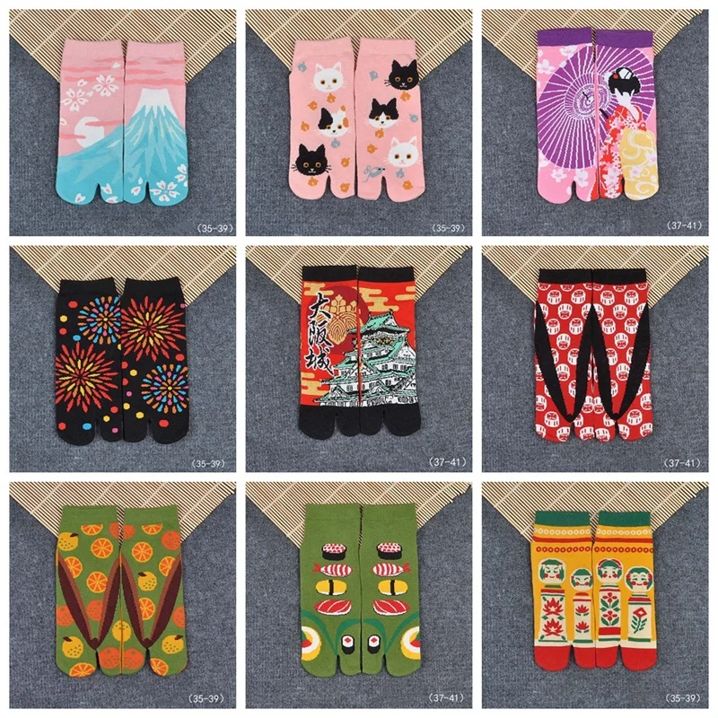 Носки с двумя пальцами унисекс японский ниндзя разноцветные сандалии с разрезом средние короткие гэта кимоно шлепанцы носки смесь хлопка ZXY9856