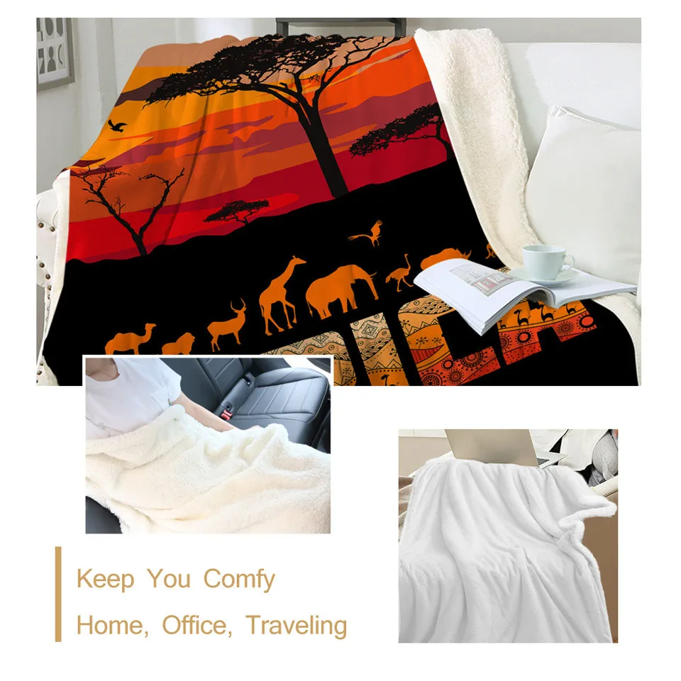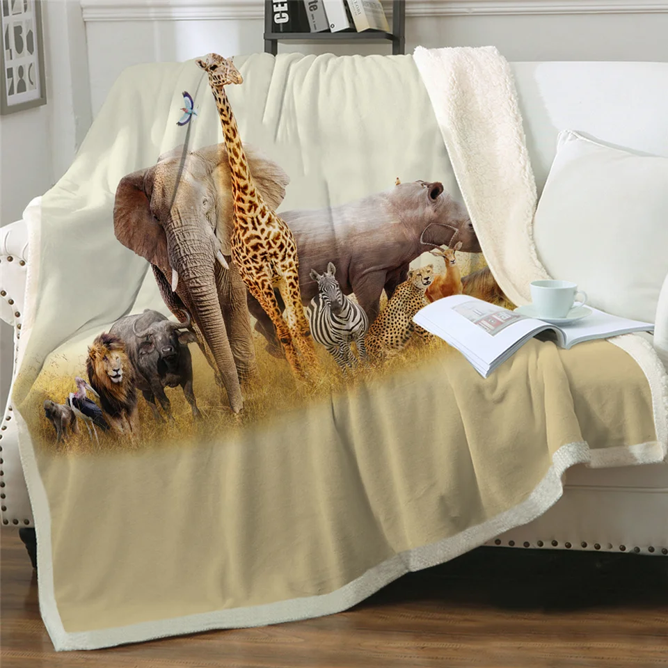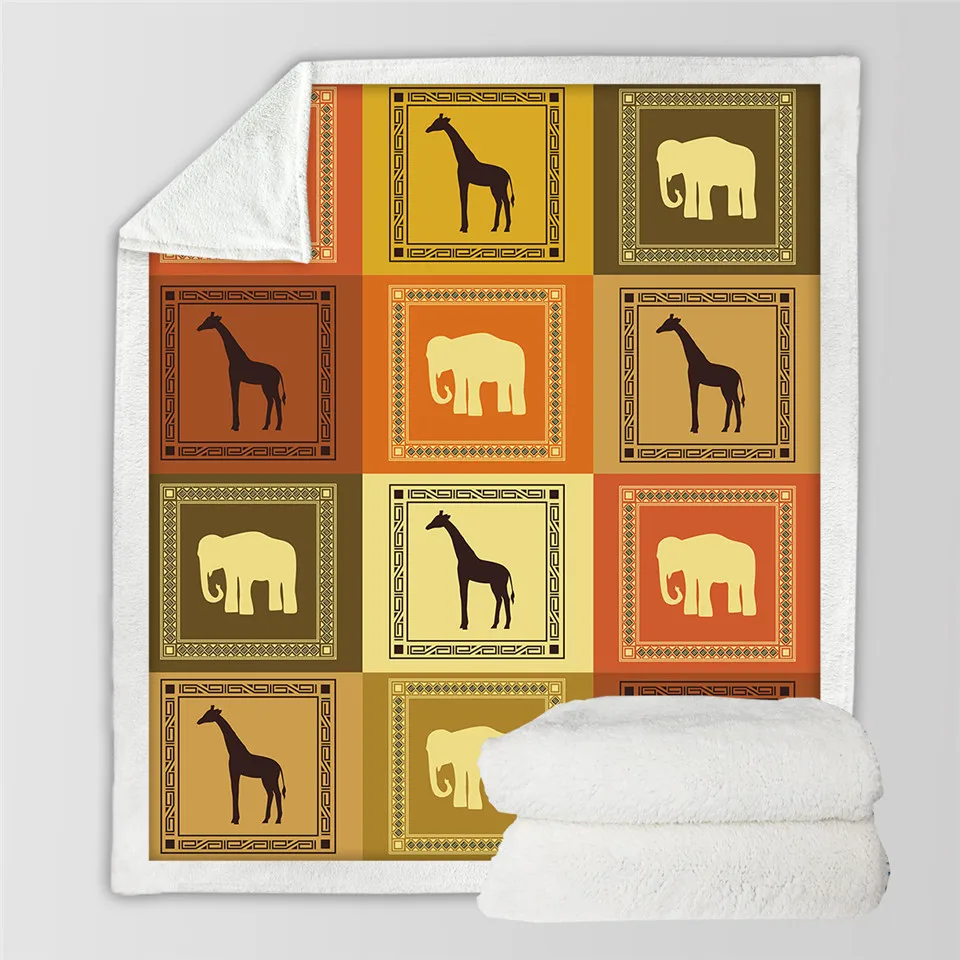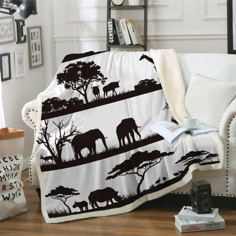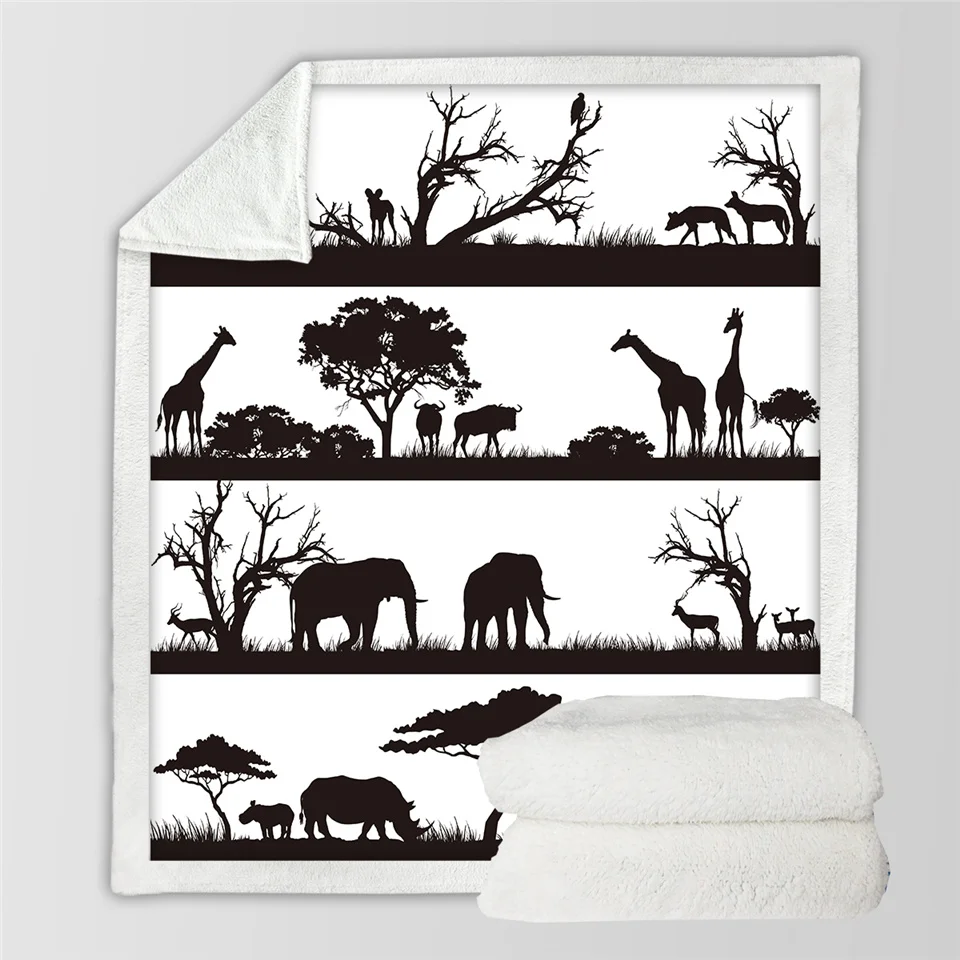 Африканское одеяло BeddingOutlet, этническое Флисовое одеяло с животными, жираф, олень, мягкое льняное покрывало, плюшевое постельное белье с закатом