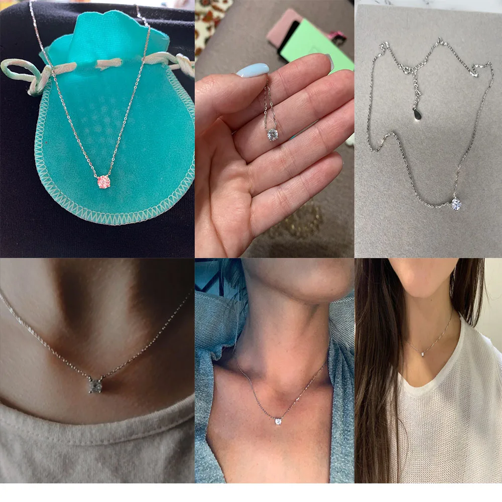 Женское колье из серебра 925 пробы, с кулоном из циркония