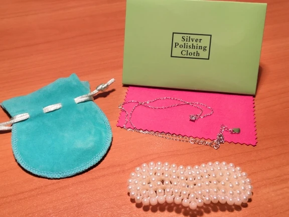 красивое нежное украшение + мешочек футляр + странная заколка в подарок + салфетка для протирания?