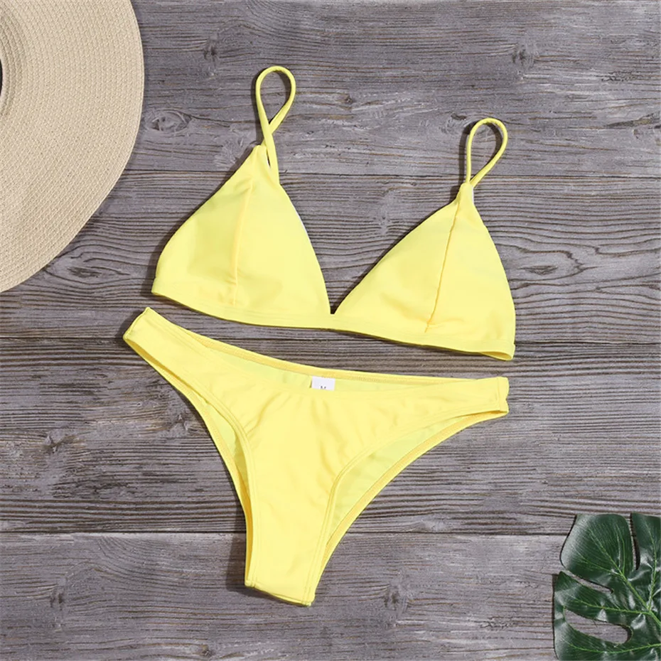 Соблазнительное треугольное микро-бикини 2020, Женский однотонный купальный костюм, женская пляжная одежда, женский купальник, Бразильское бикини, комплект бикини