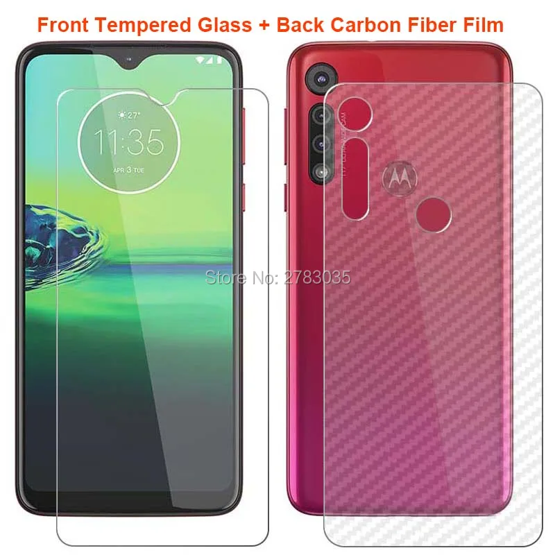 Для Motorola Moto G8 Play 1 набор = мягкая задняя пленка из углеродного волокна наклейка + Ультра тонкое закаленное стекло передняя защита экрана