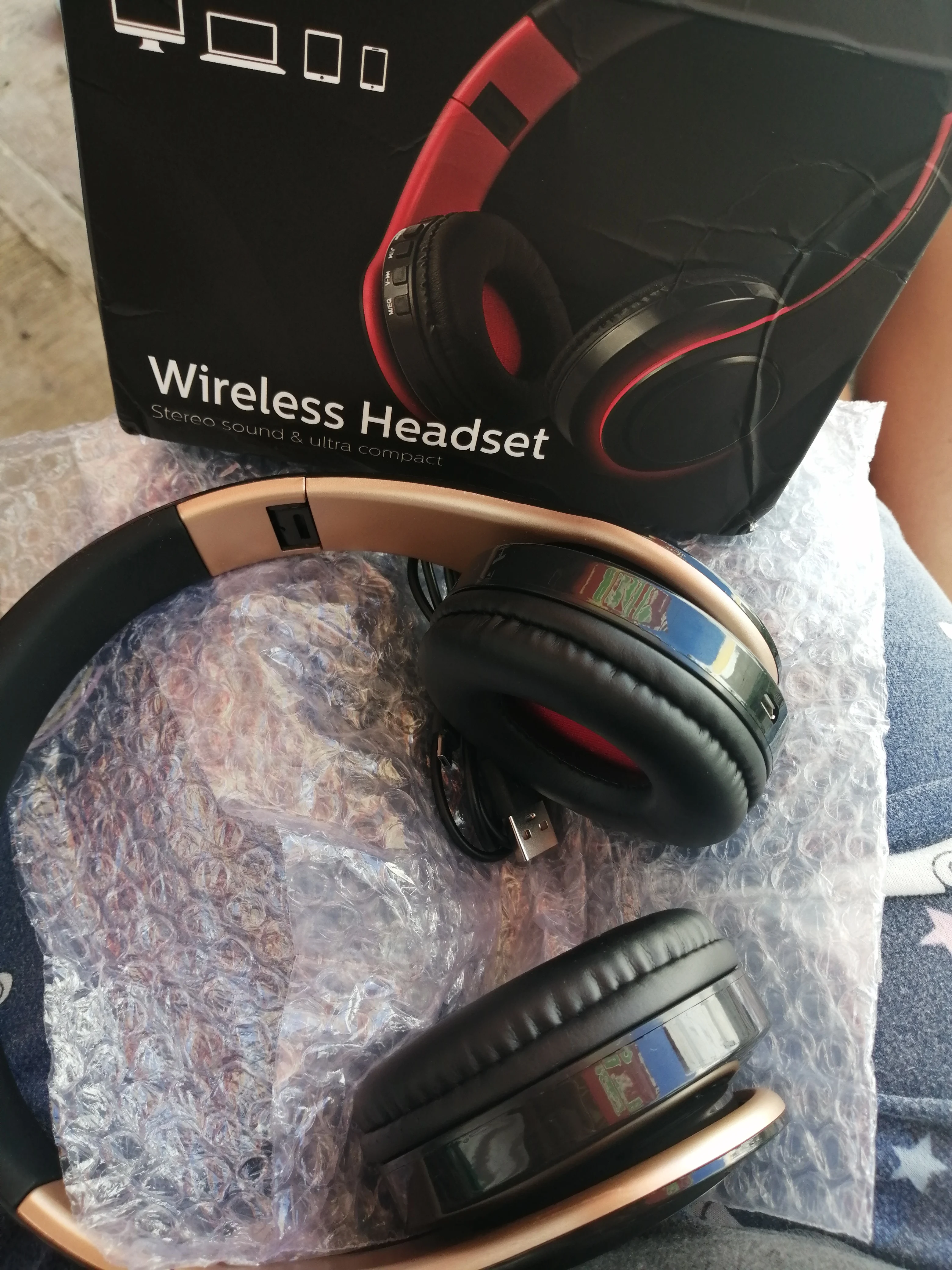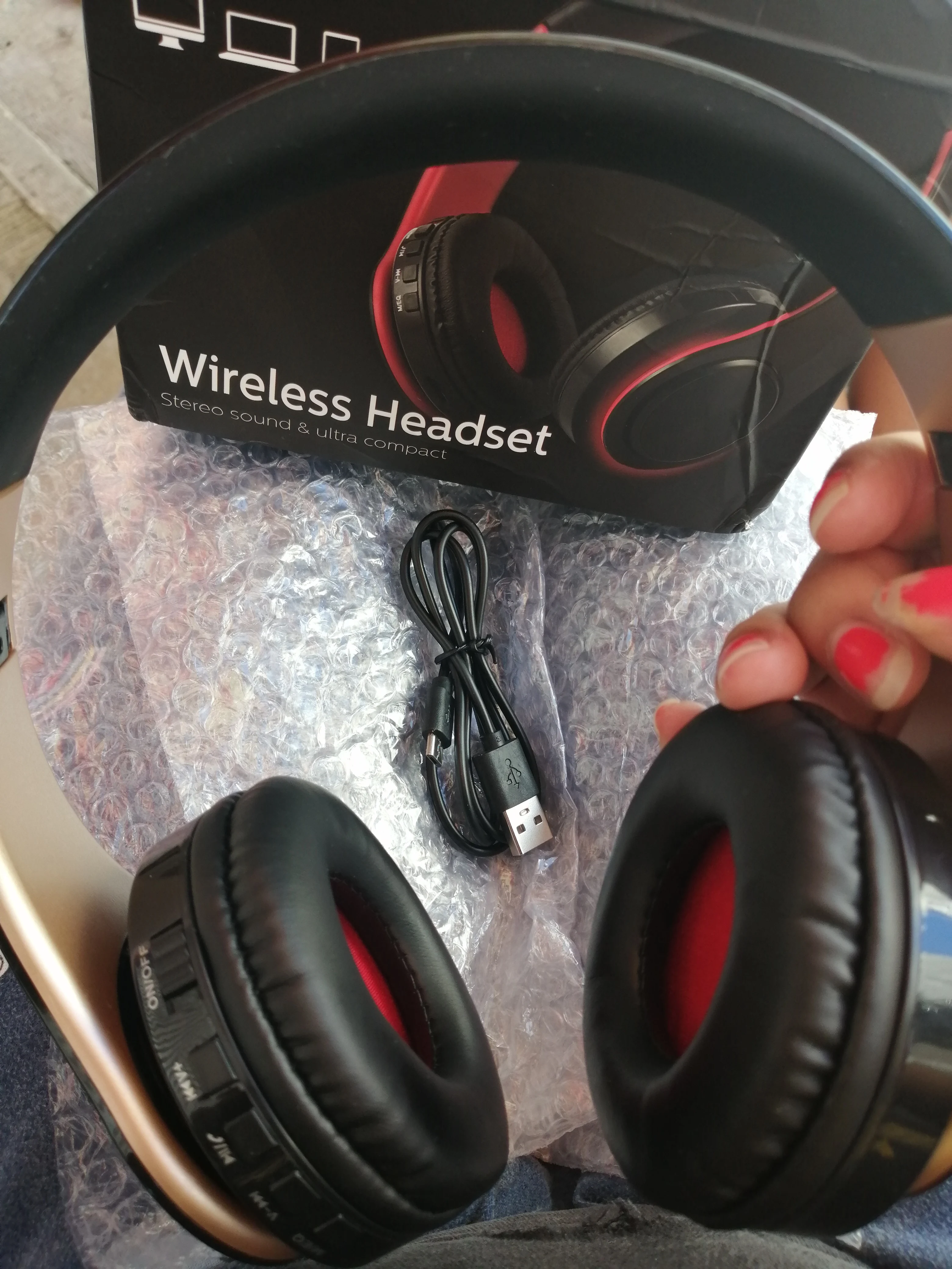 Заказ пришёл быстрее, чем ожидалось. Пока с наушниками всё в порядке. Перед заказом надо учитывать, что зарядный кабель - это переходник USB - microUSB. Хорошо греют уши :) .