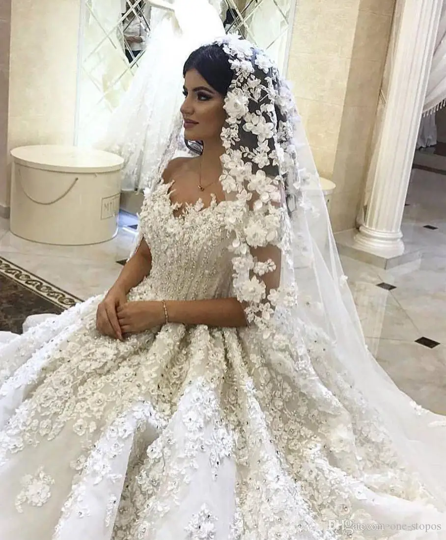 Роскошное 3D кружевное бальное платье с открытыми плечами и цветами, свадебные платья, винтажное платье принцессы, Саудовский, Арабский Дубай, размера плюс, свадебное платье