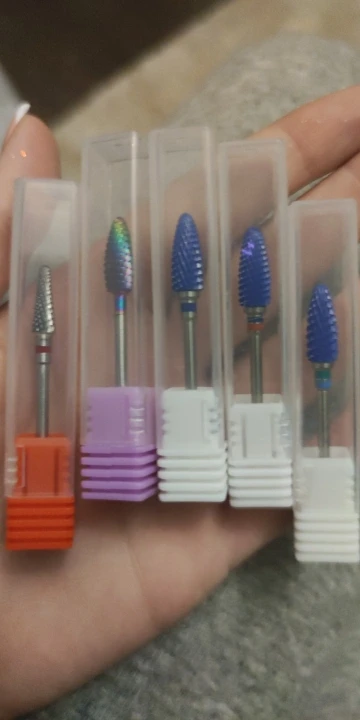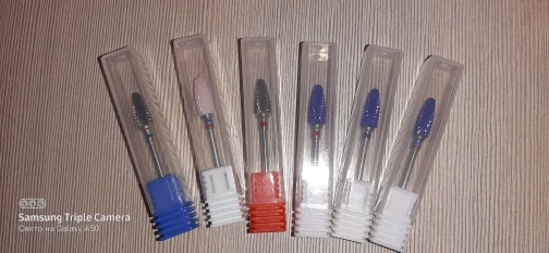 Карбидные фрезы для маникюра. Очень удобная форма. Заказываю не впервые. Брала разных насечек. По сравнению со старой они чуть меньше, и насечка по моему более грубая. В работе именно их еще не пробовала, позже отзыв дополню. Пришли Новой Почтой. За месяц.