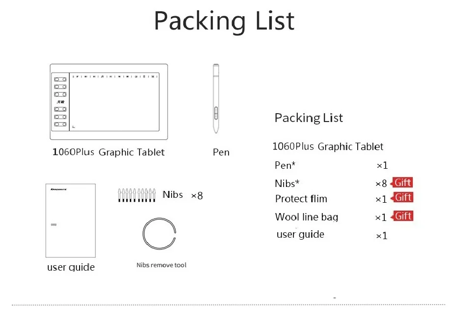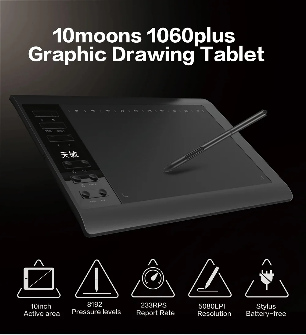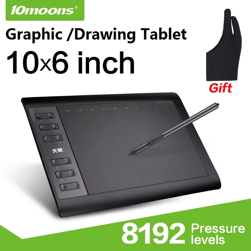 Графический планшет 10moons 1060Plus, цифровой планшет для рисования 10x6 дюймов, 8192 уровней нажатия, перо и перчатка без батареи