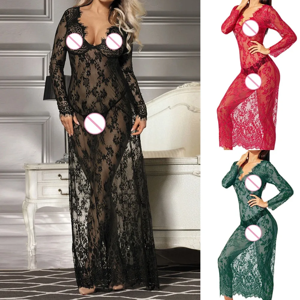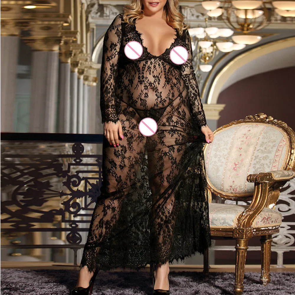Женское неглиже, ночная сорочка, сексуальное кружевное платье, прозрачное Сетчатое длинное экзотическое платье, красивое ночное белье, плюс 3xl