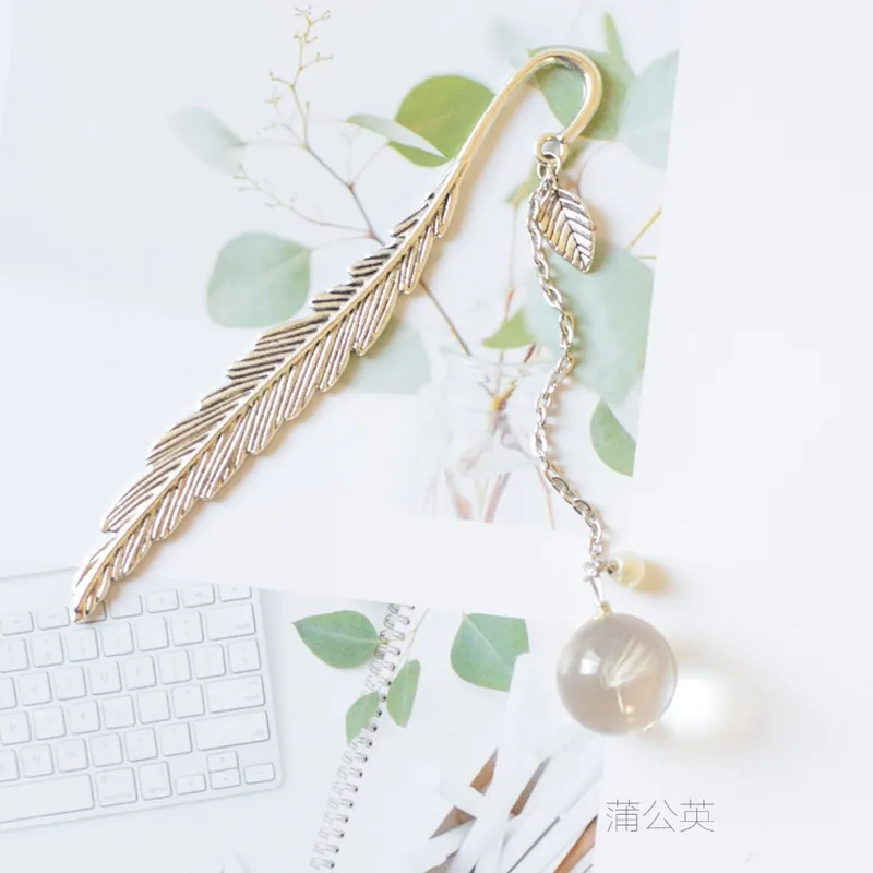 Сушенный цветочный образца Закладка для книги Винтаж перо Металл книга клип висит красивые закладки для книги с кисточками школьные принадлежности подарки