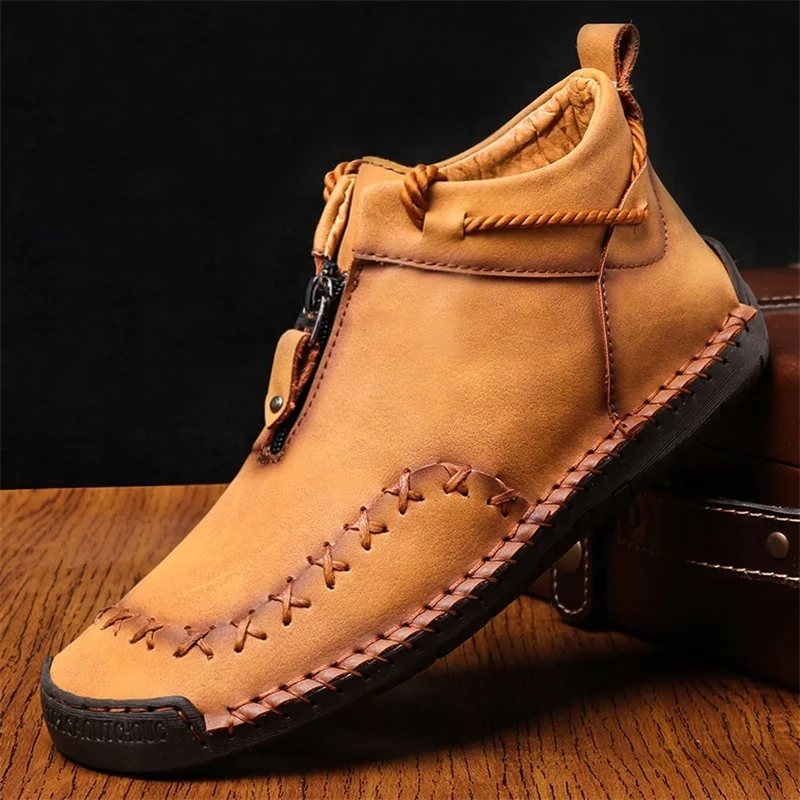 Высококачественная Зимняя мужская обувь, теплые кожаные мужские бот...
