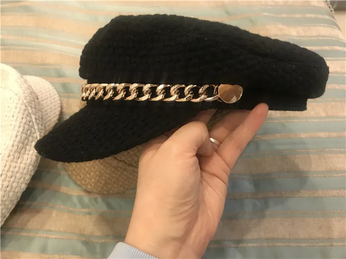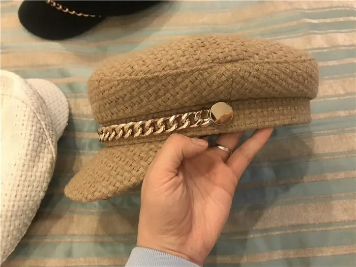 Осенне-зимняя восьмиугольная шапка 01911-shi с металлической цепочкой для мужчин и женщин кепка бейсболка для досуга