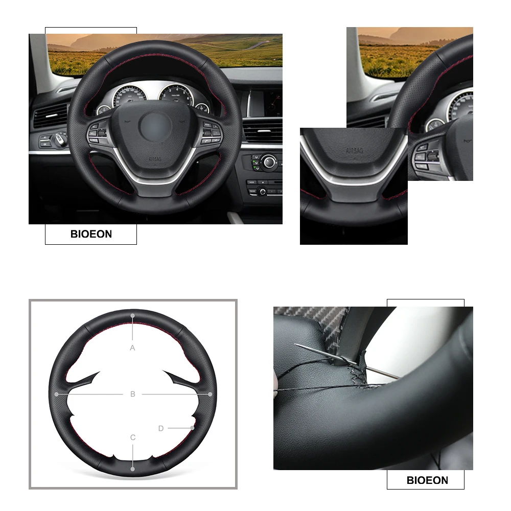 Ручное шитье, черная пленка из искусственной кожи Чехлы рулевого колеса автомобиля для BMW X3 F25 2010-2017 X4 F26 2014-2018