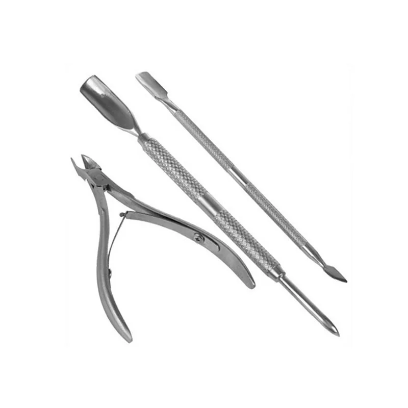 Кусачки для кутикулы толкатель ножницы для ногтей инструменты для дизайна ногтей Спецификация: Quantity: 3 шт. Материал: SS Особенности: 3 в 1 Набор инструментов для маникюра и педикюра, включая триммер для кутикулы, толкатель для кутикулы и треугольный скребок для лака для ногтей. Это полностью функциональный косметический инструмент, полный уход, который подходит для ваших ногтей и ногтей. Профессиональный резак для кутикулы 1/2 челюсти, его острые лезвия режут даже самые маленькие кутикулы в небольших областях вокруг ногтей. Ручки 4 дюйма в длину, что позволяет вам удобно управлять и маневрировать.