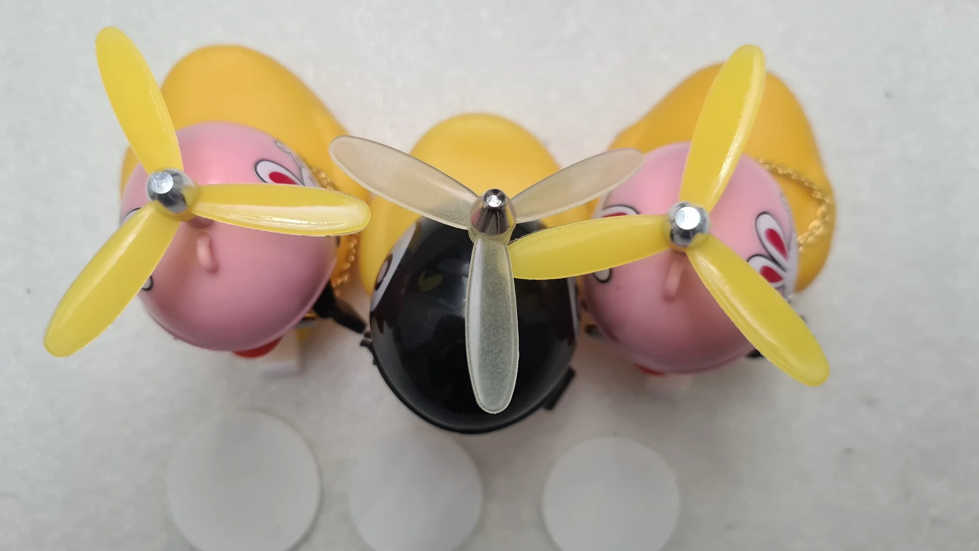 Уточка "сделай сам": всё отдельно, шлем, пропеллер, очки. Сама уточка оооочень милая). Очки надевать не буду, они её только испортят. Проблема у меня только одна: руль толстый, резинка, на которую крепится уточка, растягивается, и уточка сидит неплотно. Надо будет чем-то укрепить, чтобы не свалилась.