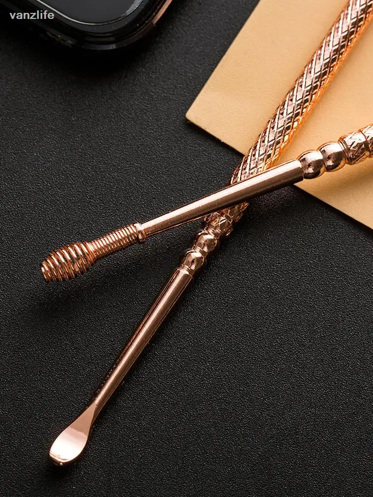 Спиральный ушной Пинцет из нержавеющей стали розового золота, инструмент для выкапывания ушей, домашний инструмент для чистки ушей с двойной головкой