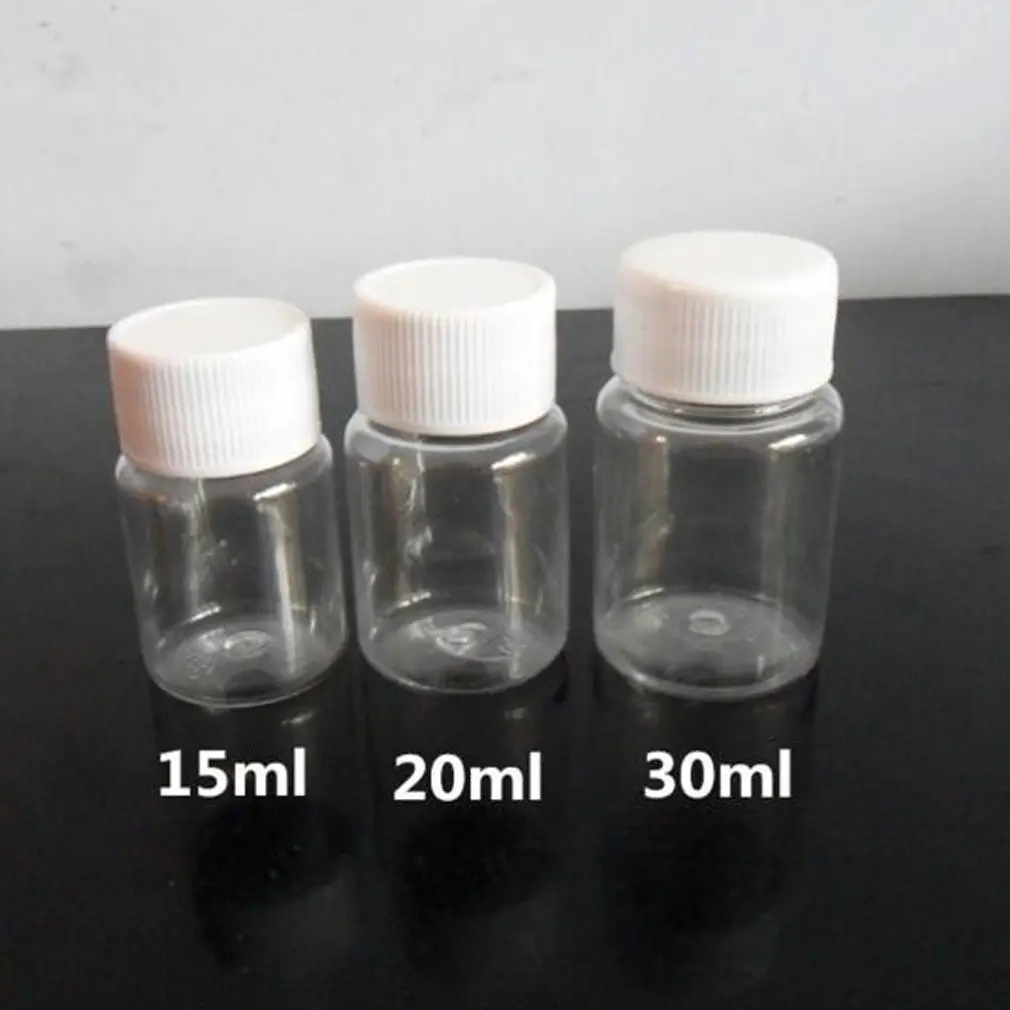 Много 20 шт прозрачные пластиковые ПЭТ многоразовые бутылки для уплотнения флаконы контейнер для хранения реагентов пластиковые винтовые крышки 15 мл20 мл30 мл60 мл