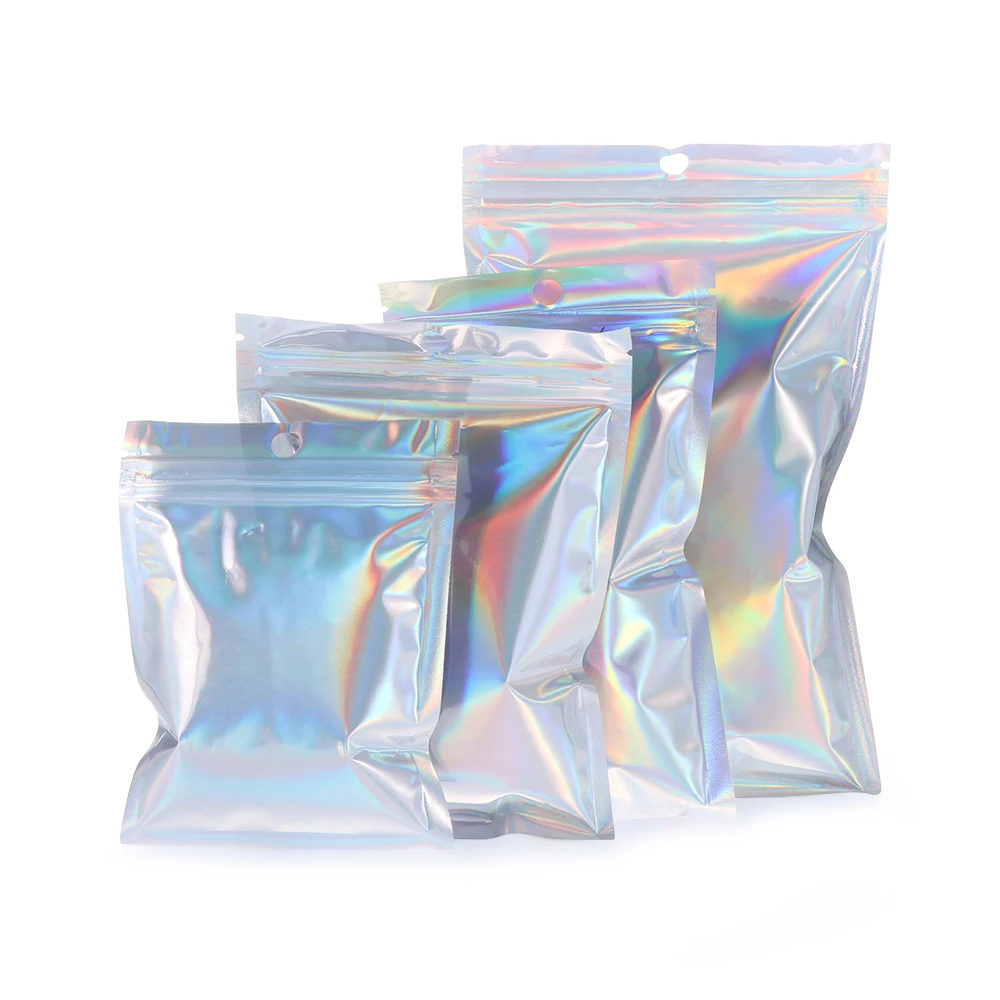 20 шт/упаковка, пластиковый пакет, 6 размеров, алюминиевая фольга, голограмма, мешок для еды, маленькие водонепроницаемые мешки на молнии