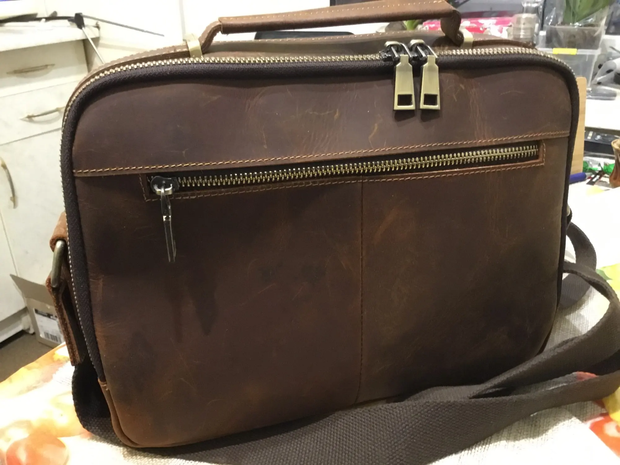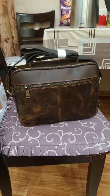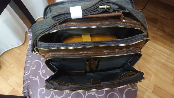 Посылка шла чуть больше двух недель.Упаковано отлично.Сумка мне понравилась даже не ожидал, мне трудно угодить так как моя любимая за 10 лет изрядно потрепалась да и крепление ремня постоянно отрывается,а тут надежно сделано хоть и ремень не отстегивается зато пришит крепко.Переживал что Айпад не поместится оказалось зря сюда даже тринадцатидюймовый должен зайти.В маленьком кармане корманчик под телефон. Как раз редми ноте7 помещается в притык. Удобно карманчики для банковских карт и для двух авторучек.Как для меня все удобно.Молнии крепкие,смазал парафиновой свечой работать стали легко.Кожа толстая,форму держит Не знаю может царапается будет время покажет.Но сумка хорошая хоть и дороговато но она того стоит. Продавец хороший рекомендую.