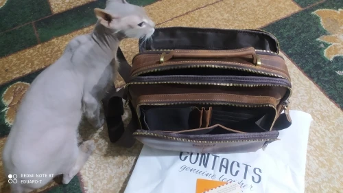 Я надеюсь, что это будет так красиво, как на фотографиях, но это еще лучше, это минимальный 120%! Я действительно доволен, кожа отличного качества, мягкая и гибкая, не теряя форму, металлические аксессуары высочайшего качества и все молнии работают хорошо. Внутри есть даже детали, такие как место для телефона, для ручек, еще одна маленькая молния, еще одно отделение с застежкой из кожи .. Просто класс. Идеально подходит для хранения планшета, небольших бумажных вещей (A5), бутылки с водой, кошелька и многих других мелких вещей. Прекрасный цвет, идеально. Мне очень нравится, спасибо!