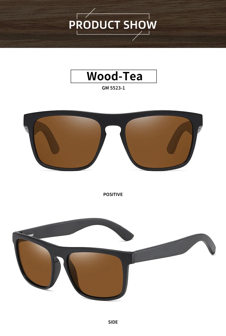 Квадратные винтажные дневные бамбуковые солнцезащитные очки GM для мужчин и женщин, деревянные поляризованные солнцезащитные очки в стиле ретро, Брендовые очки