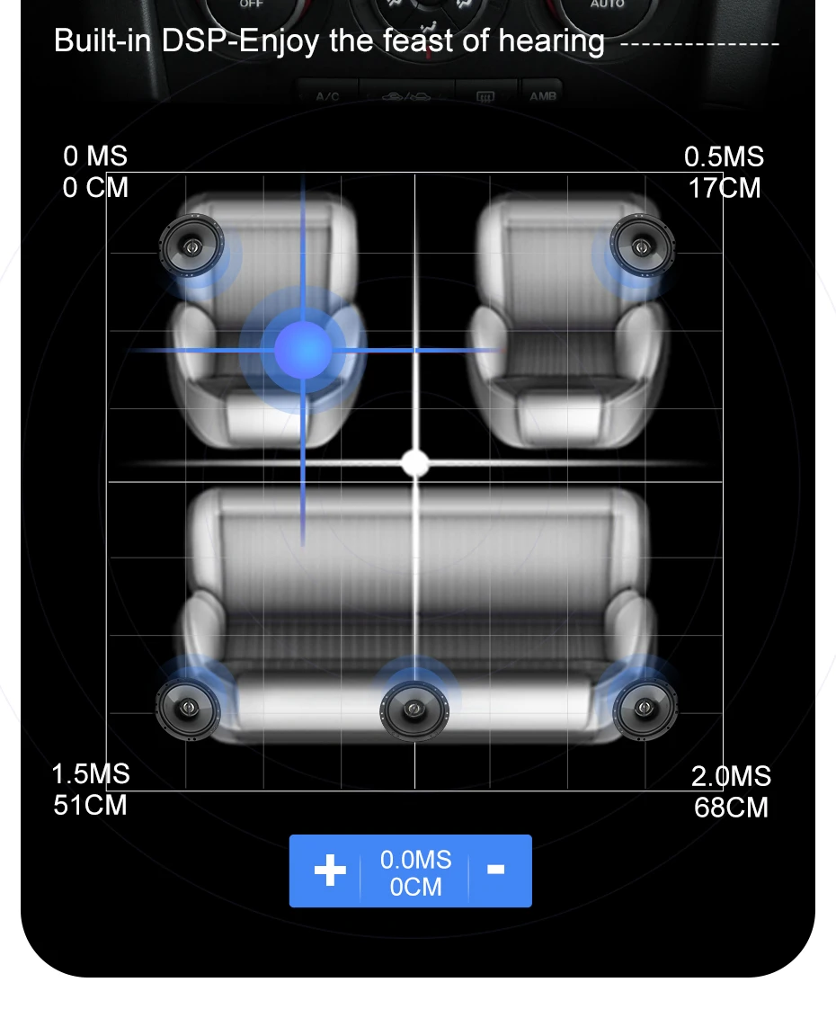 С мощным чипом DSP, поддерживает 32 регулировки эквалайзера и регулировку положения.Настраивает лучший звуковой эффект для путешествия.