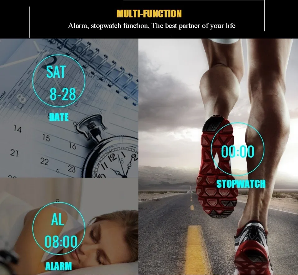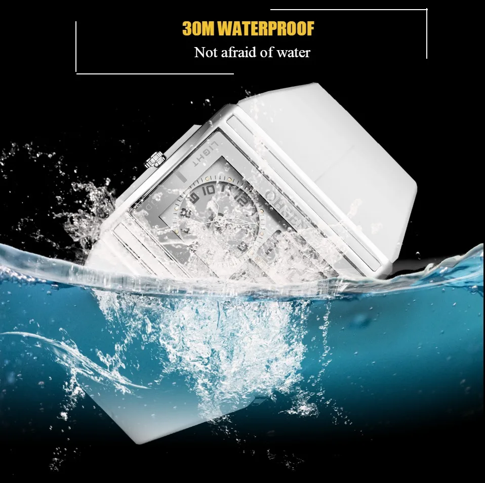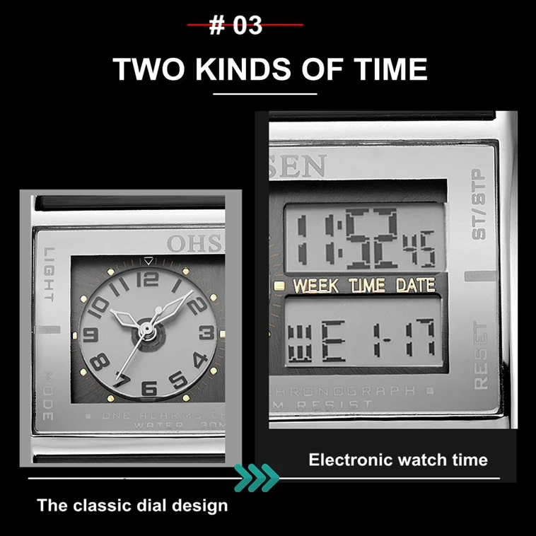 * Часы в стиле милитари: большой спортивный Циферблат из нержавеющей стали с высококачественным ремешком из искусственной кожи, подходит как для активного отдыха, так и для занятий в помещении, таких как бег, туризм и так далее* Водонепроницаемость до 30 м, удовлетворяет ваши повседневные водонепроницаемые потребности (Примечание: Не нажимайте кнопки под водой, избегайте горячей воды или дайвинга)* Идеальный подарок для мужчин: питание от японских кнопочных ячеек CR2025, обеспечивает точное хранение времени и более длительный срок службы* Многофункциональные часы: двойной дисплей времени, автоматическая дата, неделя, будильник, светодиодный дисплей, ударопрочный, секундомер, подсветка* Зазор светодиодный цифровой смешивающий традиционный аналоговый дисплей с двумя часовыми поясами позволяет вам знать время более точно независимо от того, где вы находитесь.Специальный дизайн с хронографом (секундомером) с шагом 0,01 секунд