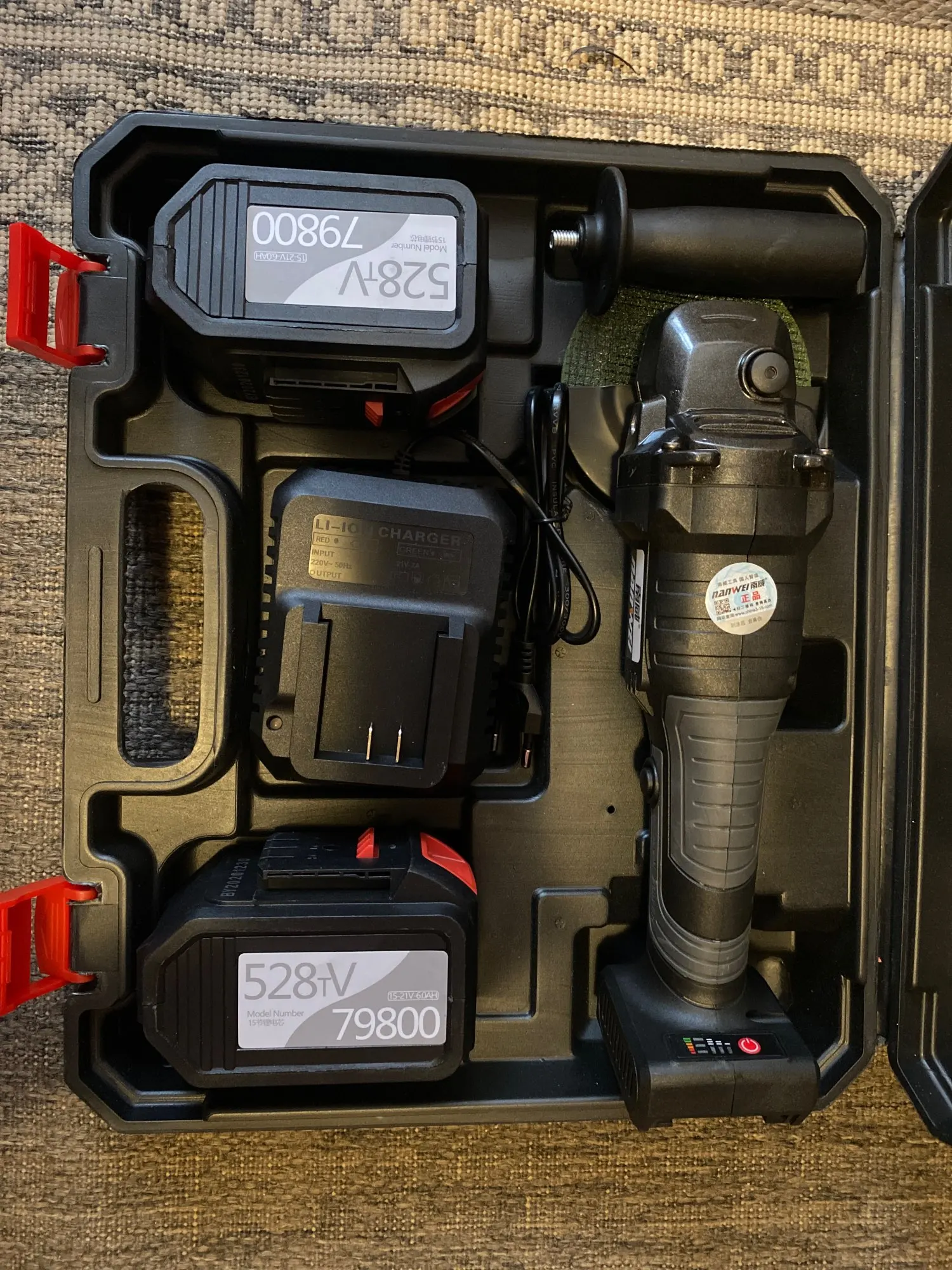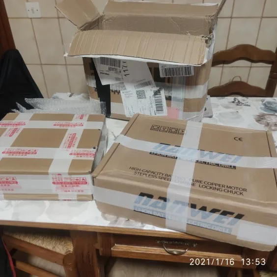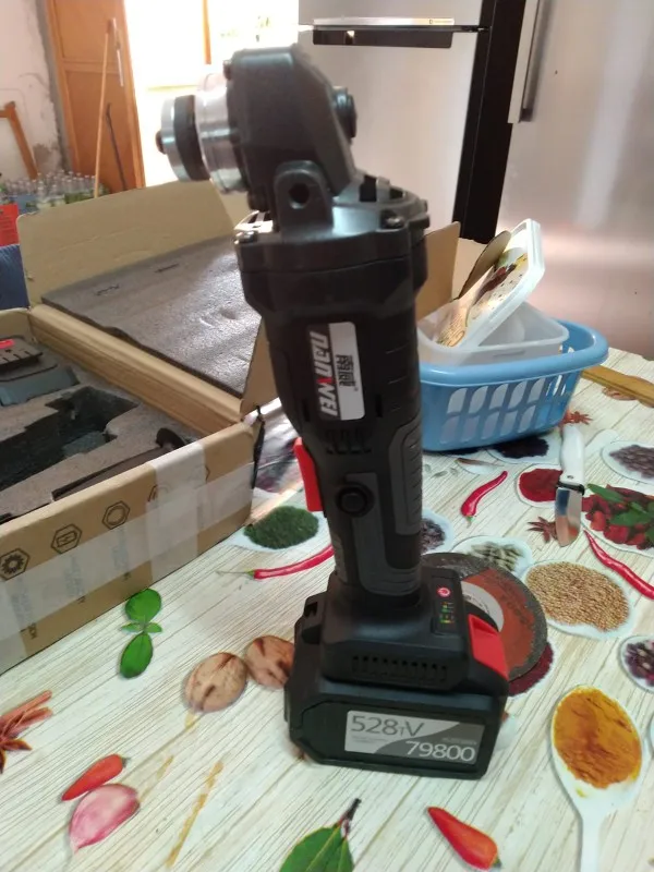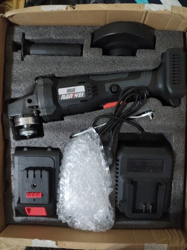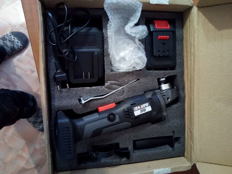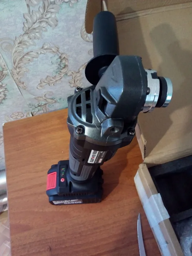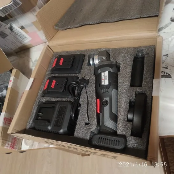 С виду все нормально, на самой болгарке можно регулировать скорость, всего три позиции. Акамуляторы пришли заряженными. Единственное при вращении вала без акамуляторов неприятный звук работы шестерней, думаю это можно исправить смеской последних. Сам ящик не от этой болгарки, но это нестрашно. Эти аккумуляторы не подходят на шуруповёрт этой же фирмы. Доставка 40 дней