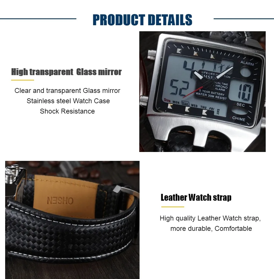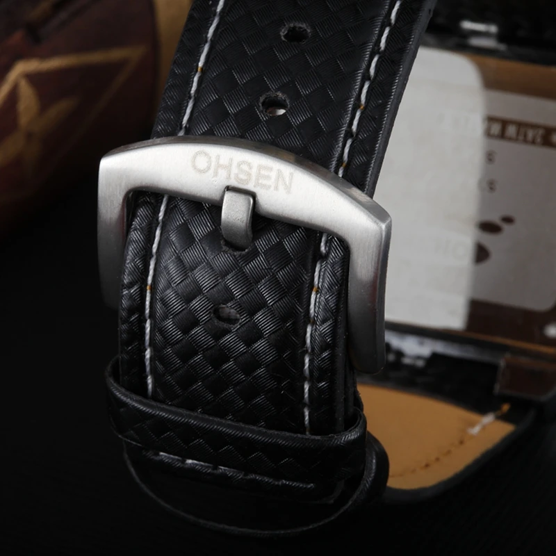 Прочный водонепроницаемый чехол для часов из сплаваЯпония Maxell кнопочная ячейка, длительный срок службыКожаный ремешок хорошего качества, более удобныйЗадняя крышка из нержавеющей стали с лазерным логотипом OHSEN