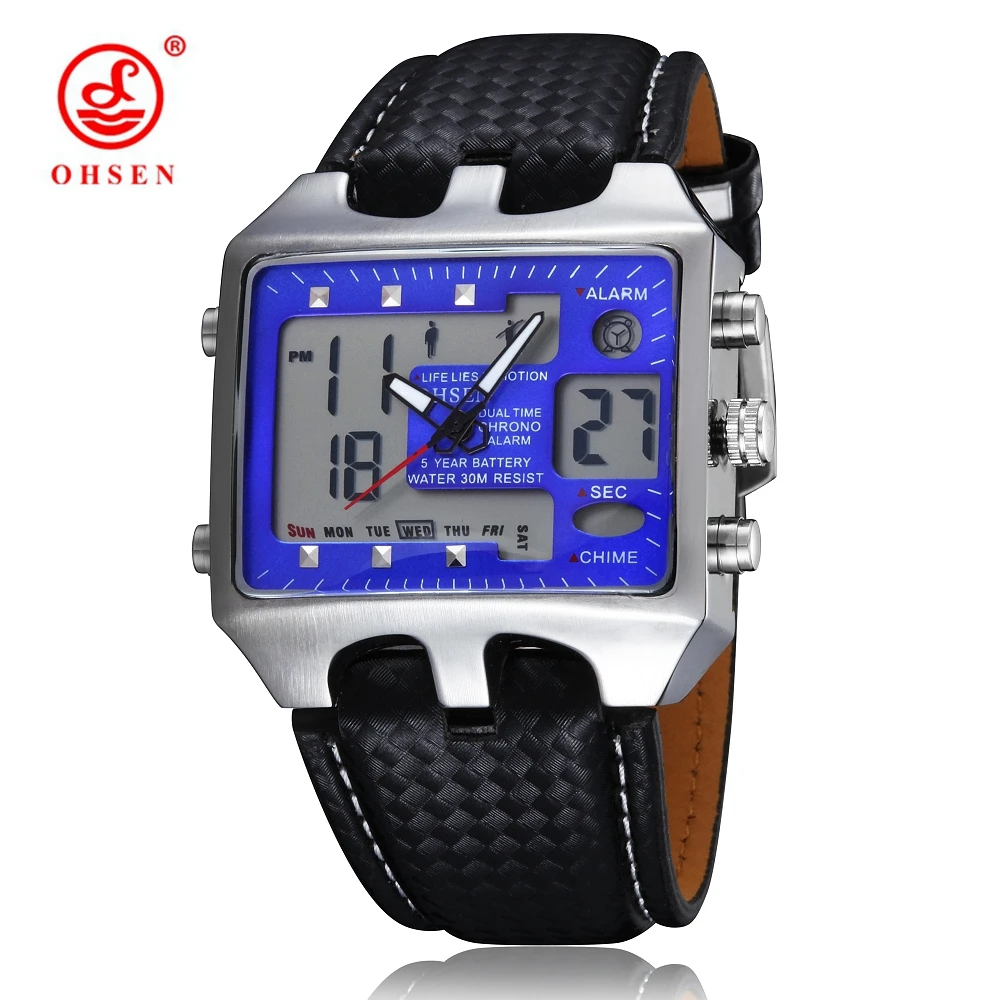 OHSEN мужские многофункциональные спортивные часы, 5 бар, водонепроницаемые, синие, военные, цифровые, наручные часы