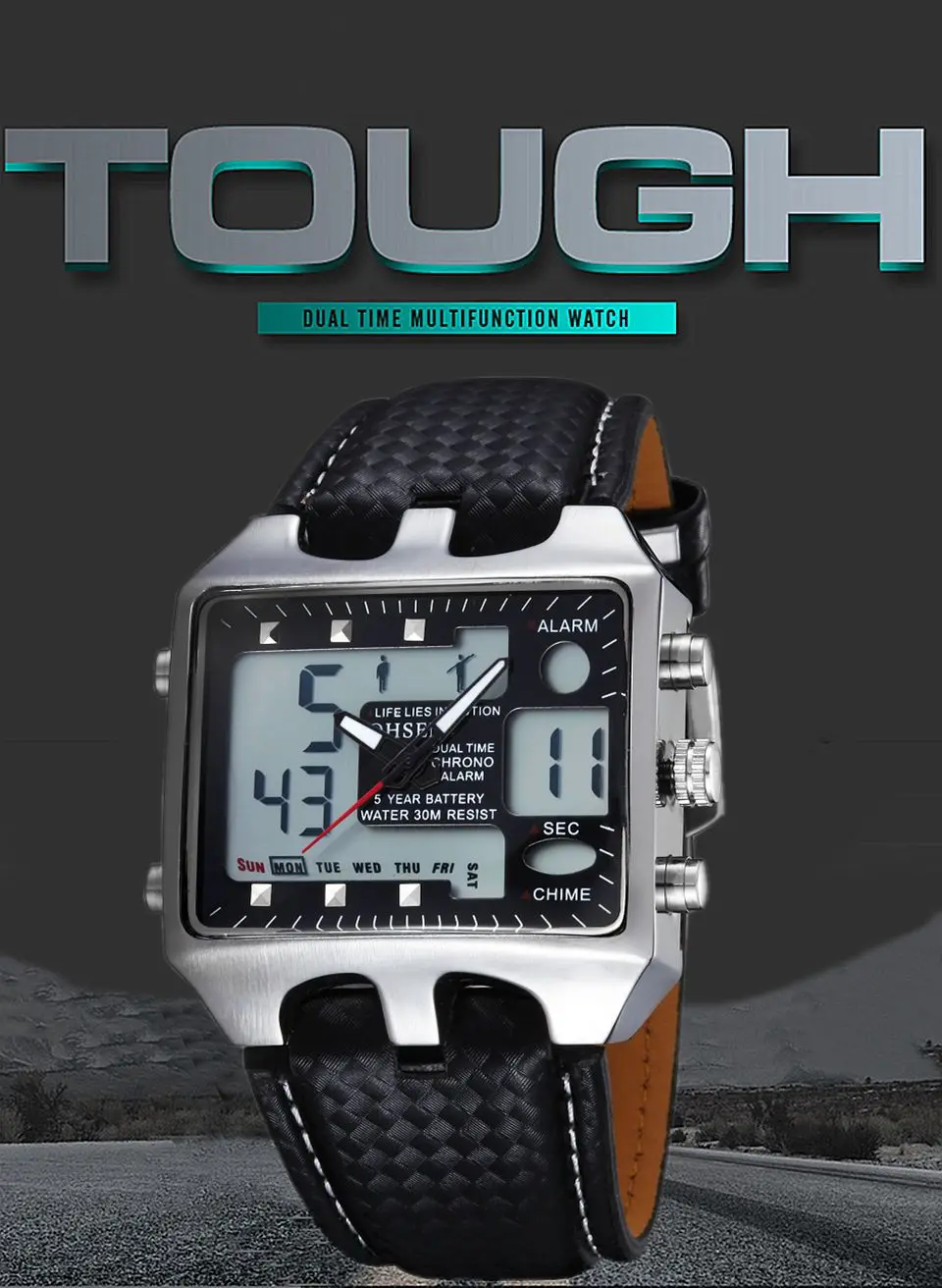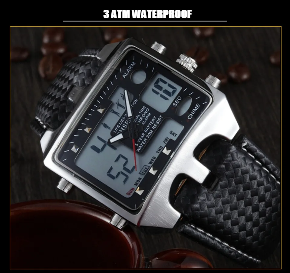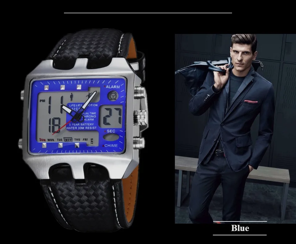 OHSEN мужские кварцевые часы с кожаным ремешком и двойным временем, модные красные военные мужские наручные часы, уличные спортивные водонепроницаемые мужские часы в подарок