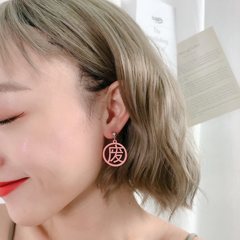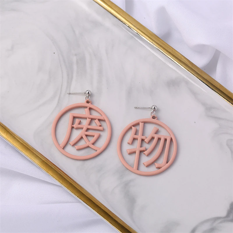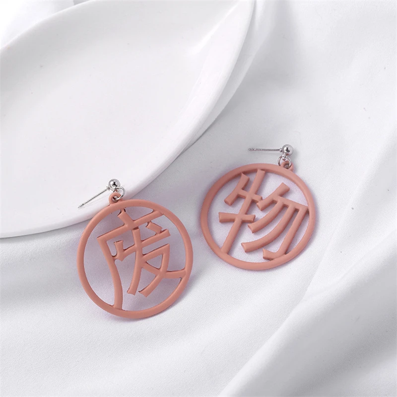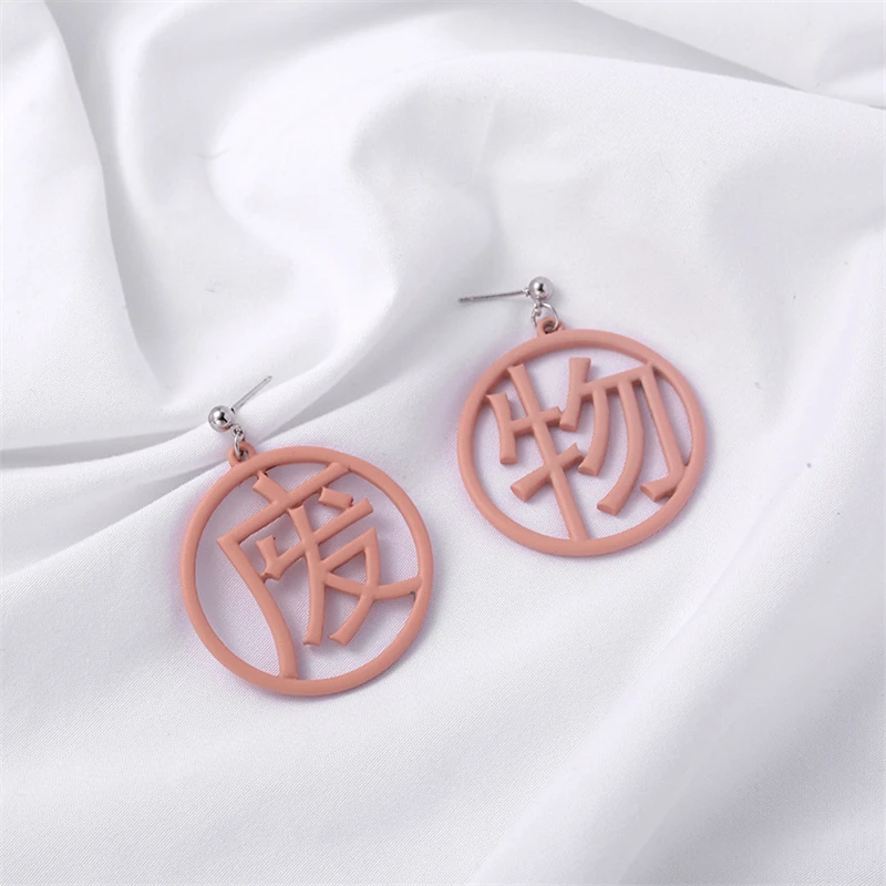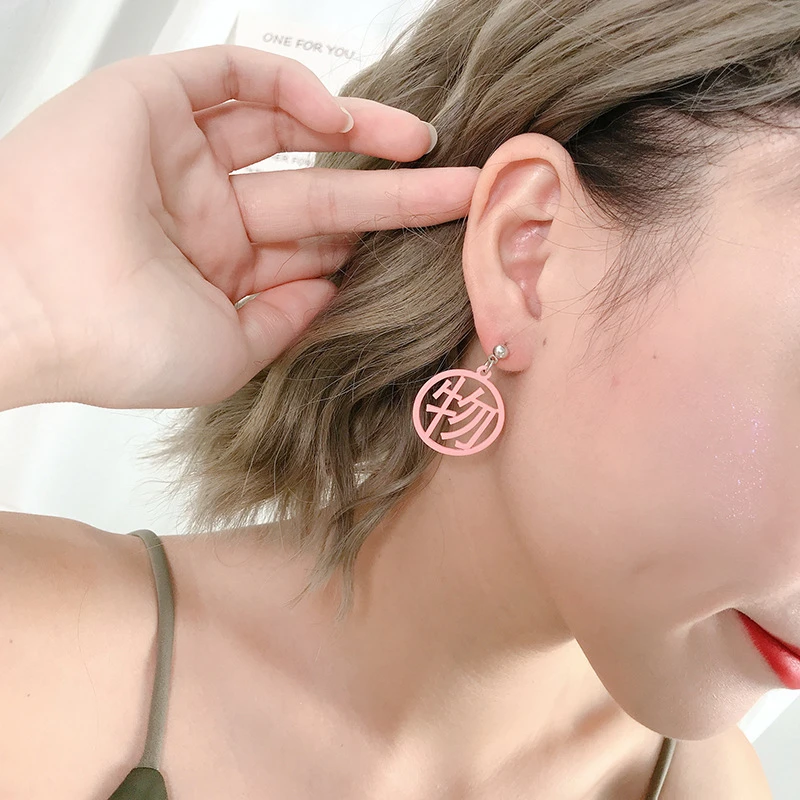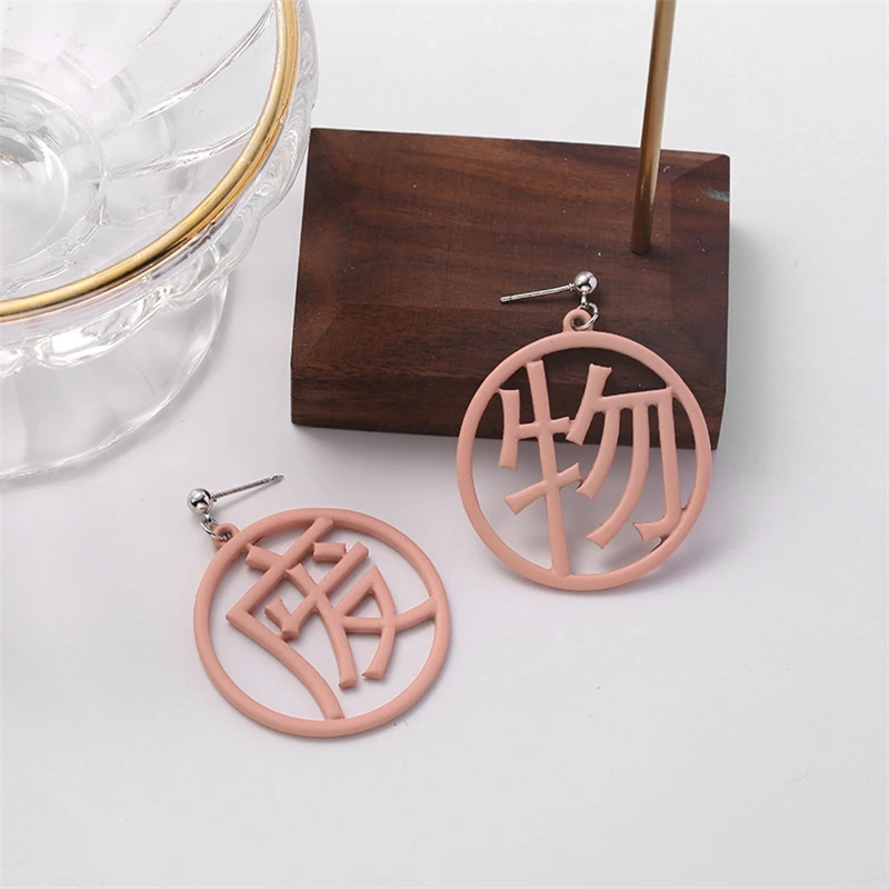 2020 Эффектные серьги Смешные китайские буквы Feiwu круглые геометрические висячие серьги индивидуальные девушки крупные серьги ювелирные изделия