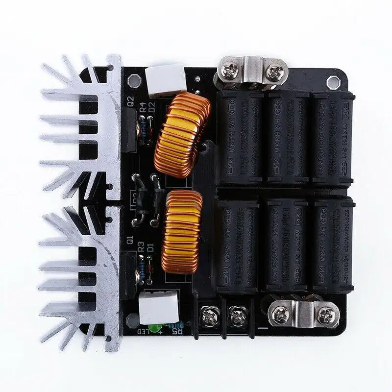 Примечание: 1: комплект содержит полный набор элементов цепи вождения и латуни 2: покупатели должны принести свою собственную мощность и блок охлаждения. 3: печатная плата с использованием двусторонней стекловолокна, в основном медные следы используются для расширения использования всей задней поверхности резонансной цепи, общей, непрерывной работы, пожалуйста, добавьте вентилятор, чтобы сдуть сверху, к резонансным конденсаторам и другим компонентам остыть. 5: таким образом, первый начнет переключать напряжение источника питания достигает 12 в выше, а затем получить доступ к индукционной нагревательной цепи. 6: объем нагреваемого объекта внутри нагревательной катушки не может превышать 1/5 объема (Если нагревательный цилиндр, то диаметр нагревательной катушки меньше диаметра 1/3), или это может быть из-за перегрузки или выгорания источника питания на цепь.