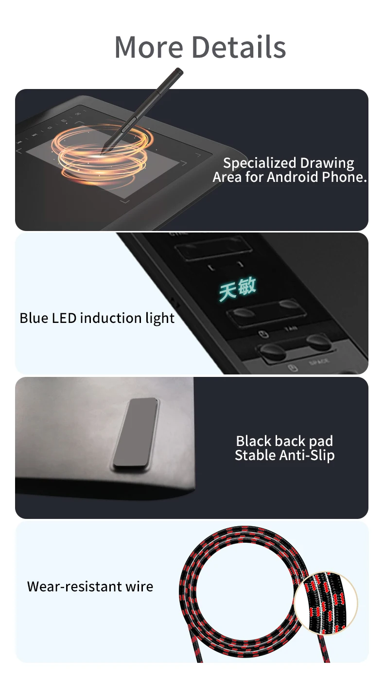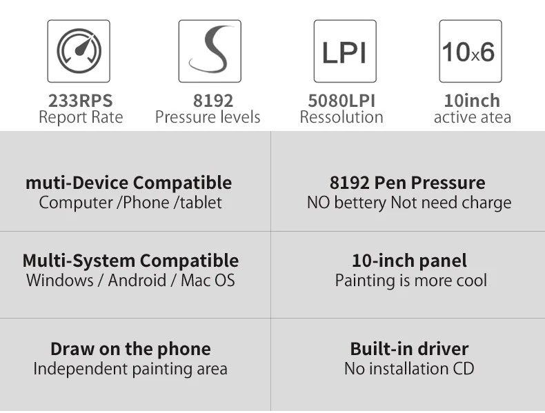 10moons G10 Master графический планшет8192 уровней давления и 233 ППС, Поддержка Android-устройства.Новая пассивная ручка, больше подходит для художников и дизайнеров.Ручка не требует зарядки, батарея не требуется.