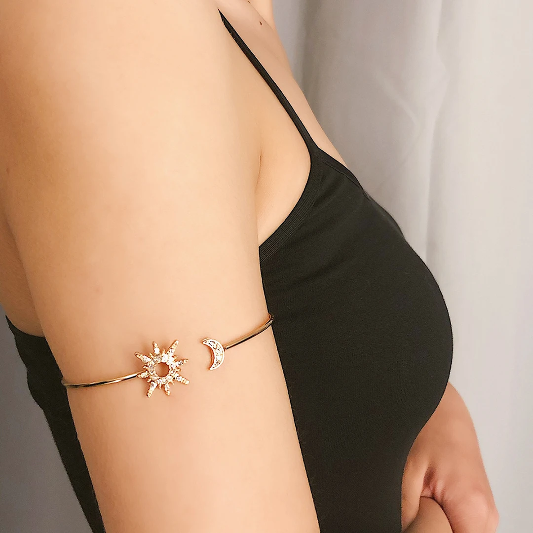 Минималистские браслеты-манжеты с кристаллами, луной, солнцем, для женщин, сексуальные геометрические металлические браслеты на руку, регулируемые ювелирные изделия для женщин
