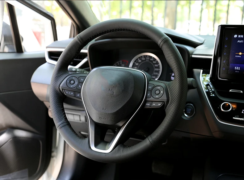 Товар пришел в срок. Качество очень хорошее, натуральная кожа, очень мягкая приятная на ощупь. Перфорация в зоне подогрева. Нитки крепкие как и сама прошивка оплетки. Размер и форма подошли идеально. На всю установку и прошивку потратил 3 часа примерно. Смотрится очень презентабельно, по мне, так лучше ,чем заводская кожа. Свет в салоне у тайоты г...но, поэтому, если будете шить в темном месте берите налобный фонарик.