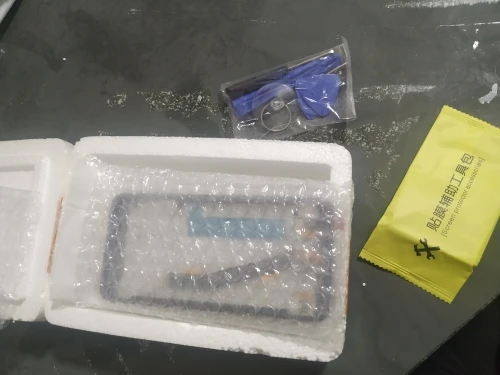 Экран выглядит как оригинальный. Почти полный пакет обслуживания (вы должны купить специальный клей, если покупаете только ЖК-дисплей без рамки) с инструментами и защитным стеклом для экрана.